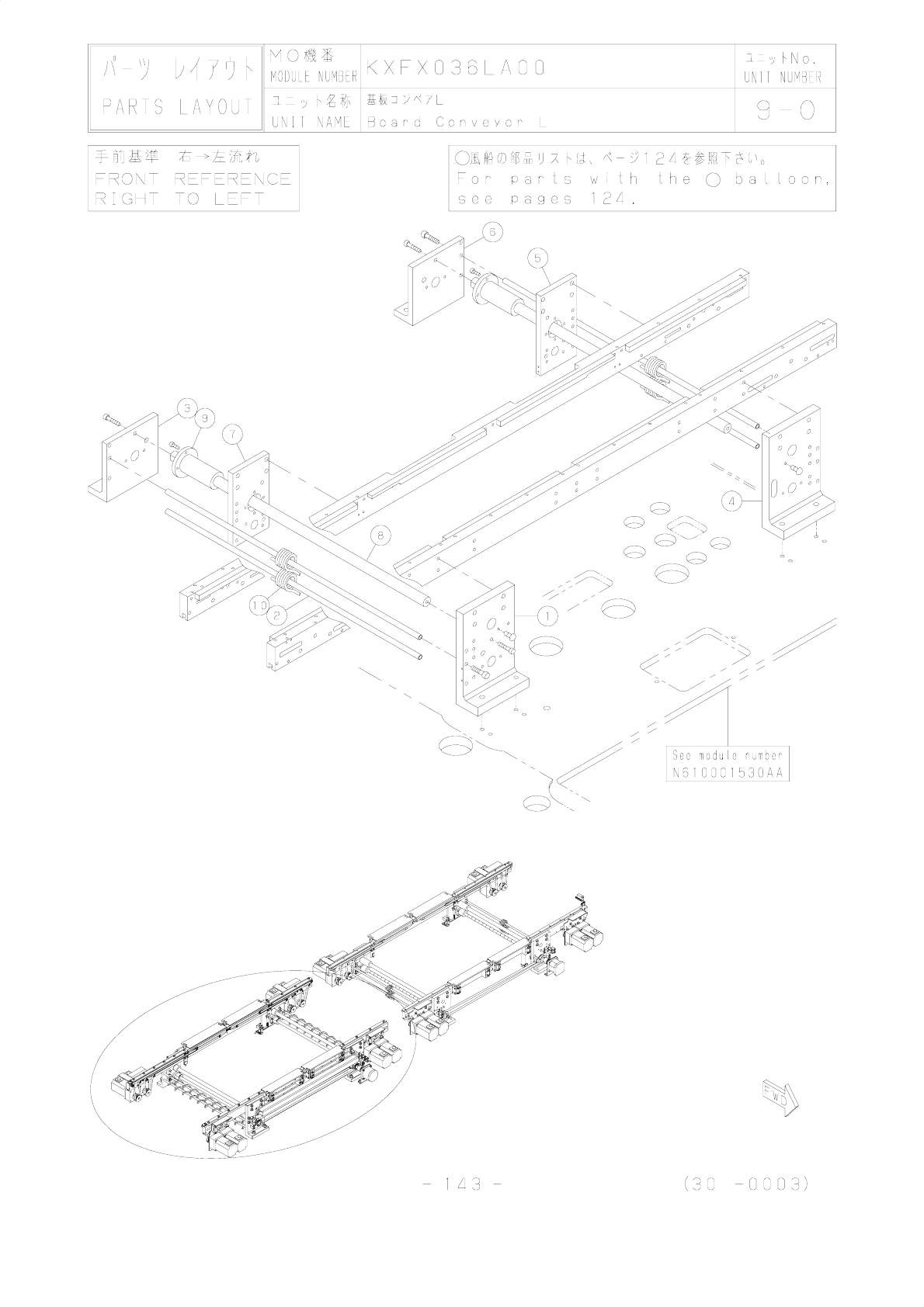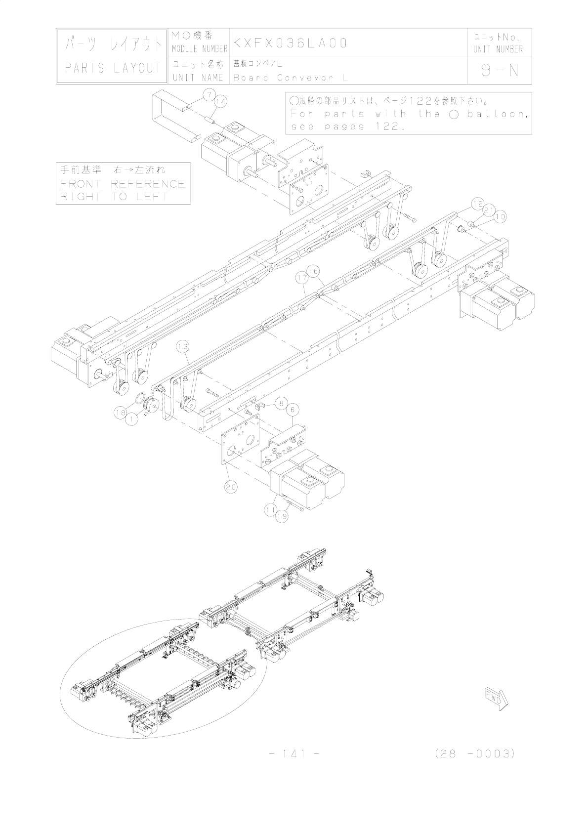 1 2 3 4 5 6 7 8 9 10 11 12 13 14 15 16 17 18 19 20 21 22 23 24 25 26 27 28 29 30 NO 番号 MO機番 ユニット名称 基板コンベアL UNIT NAME PART NUMBER 品番 部品名 型式 数量 ランク 備考 Board Conveyor L PART LIST MODULE NUMBER パーツリスト KXFX036LA00 9-N UNIT NU…