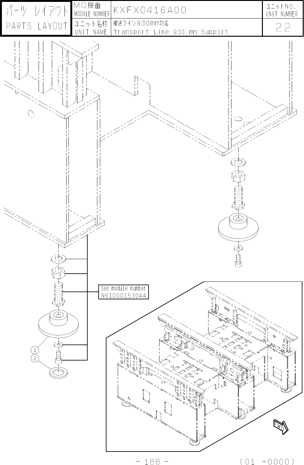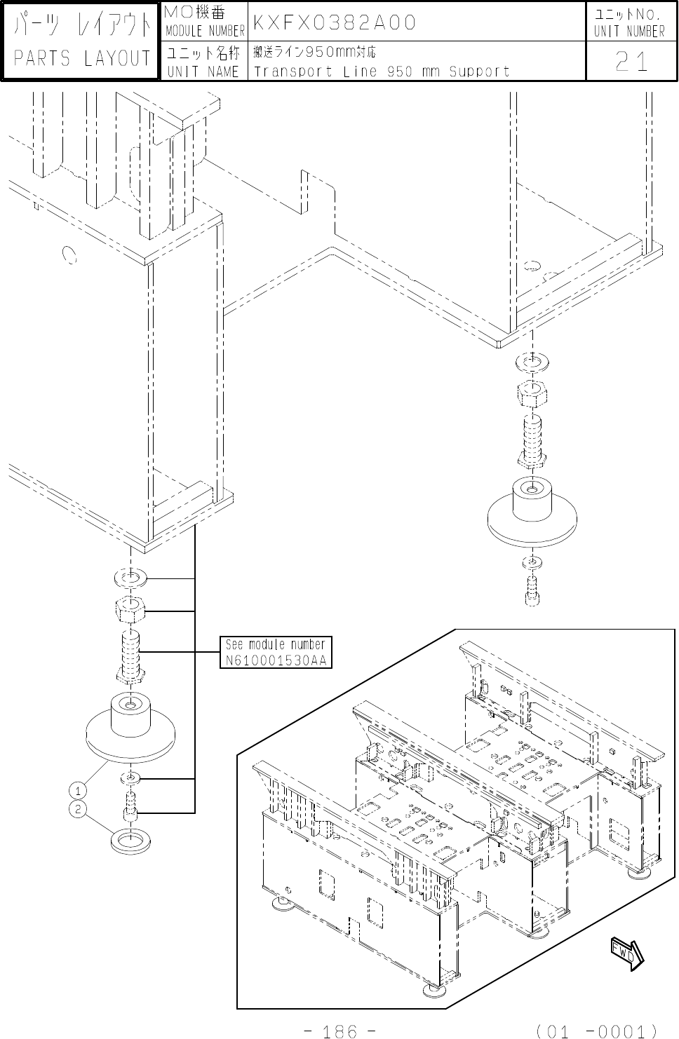 1 KXFB05CLA01 PLATE 6 2 KXFB00PCA00 PAD 4 3 4 5 6 7 8 9 10 11 12 13 14 15 16 17 18 19 20 21 22 23 24 25 26 27 28 29 30 NO 番号 MO機番 ユニット名称 搬送ライン950mm対応 UNIT NAME PART NUMBER 品番 部品名 型式 数量 ランク 備考 Transport Line 950 mm Suppor…