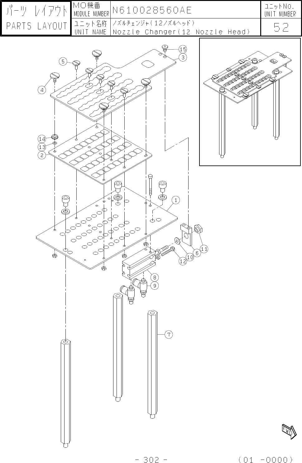 1 2 3 4 5 6 7 8 9 10 11 12 13 14 15 16 17 18 19 20 21 22 23 24 25 26 27 28 29 30 NO 番号 MO機番 ユニット名称 12ノズルヘッド接続ユニット:リニアモータ UNIT NAME PART NUMBER 品番 部品名 型式 数量 ランク 備考 12 Nozzle Head Connection Unit:for Line PART LIST MODULE …