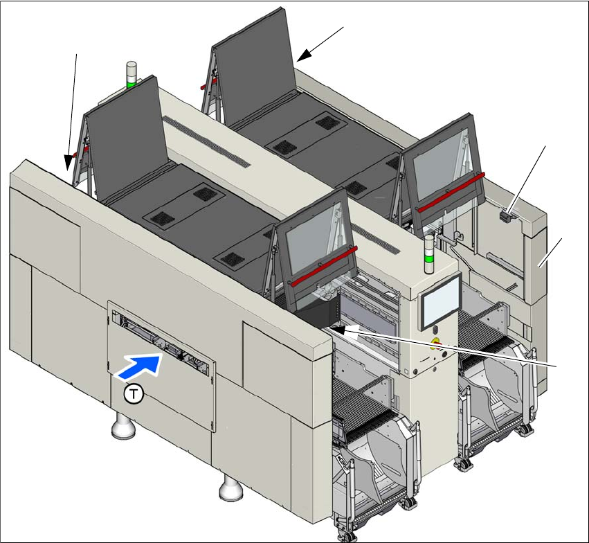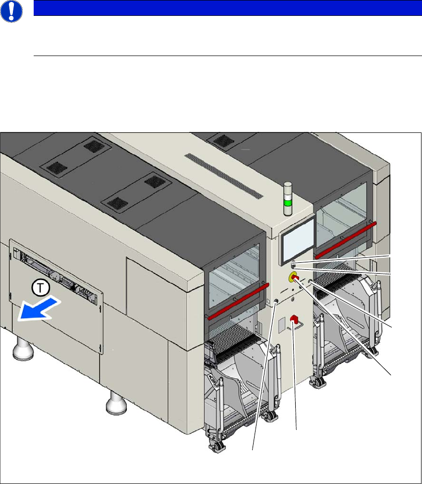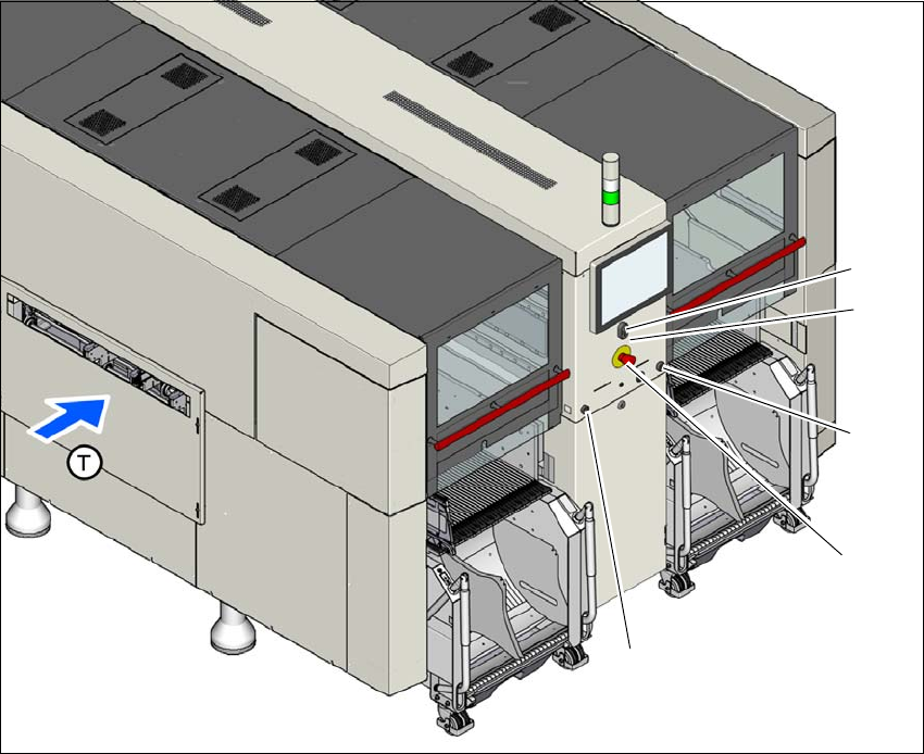 Instruc ţ iuni de utilizare SIPLACE Seria X S 2 Siguran ţ a exploat ă rii Începând cu versiunea 713.0 Edi ţ ia 11/2019 2.6 Dispozitive de siguran ţă 81 (T) Direc ţ ia de transpor t a PCB-urilor 2 Fig. 2.6 - 6 Pozi ţ ia c…