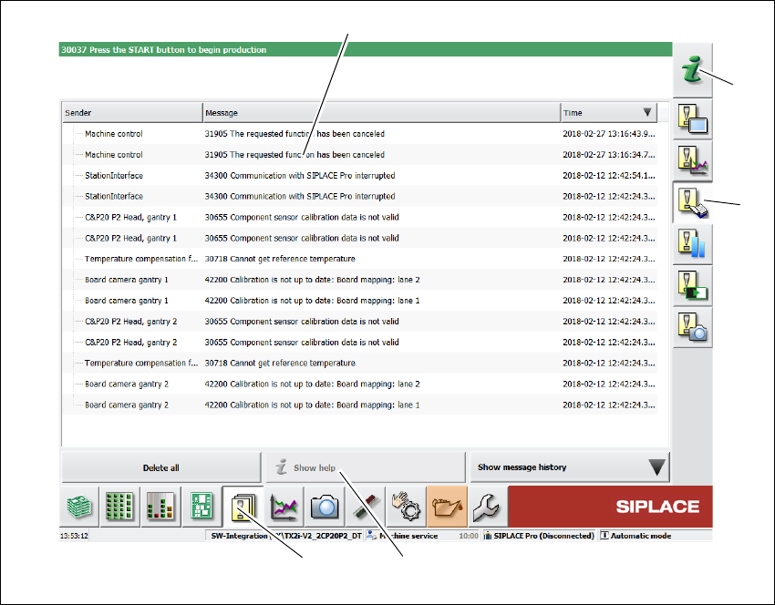 5 Sarcini la plantatoarele de componente Instruc ţ iuni de utilizare SIPLACE Seria X S 5.6 Mesaje de eroare ş i ajutorul online Începând cu versiunea 713.0 Edi ţ ia 11/2019 254 5.6.2 Afi ş area informa ţ iilor referitoar…