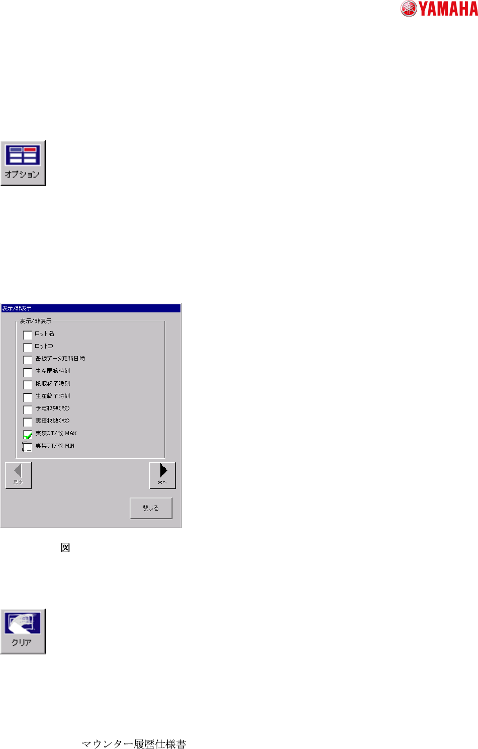 ヤマハ発動 機株式 会社 IM 事業部 マウンター技術 部 ソフト開発グループ MDOC-SOFT 50011 H015931 _TT6094. .doc 55 / 58 15. 履歴 履歴 履歴 履歴 の の の の 表示項目選択 表示項目選択 表示項目選択 表示項目選択 / / / / クリア クリア クリア クリア / / / / 並 並 並 並 べ べ べ べ 替 替 替 替 えについて えに ついて えに ついて え…