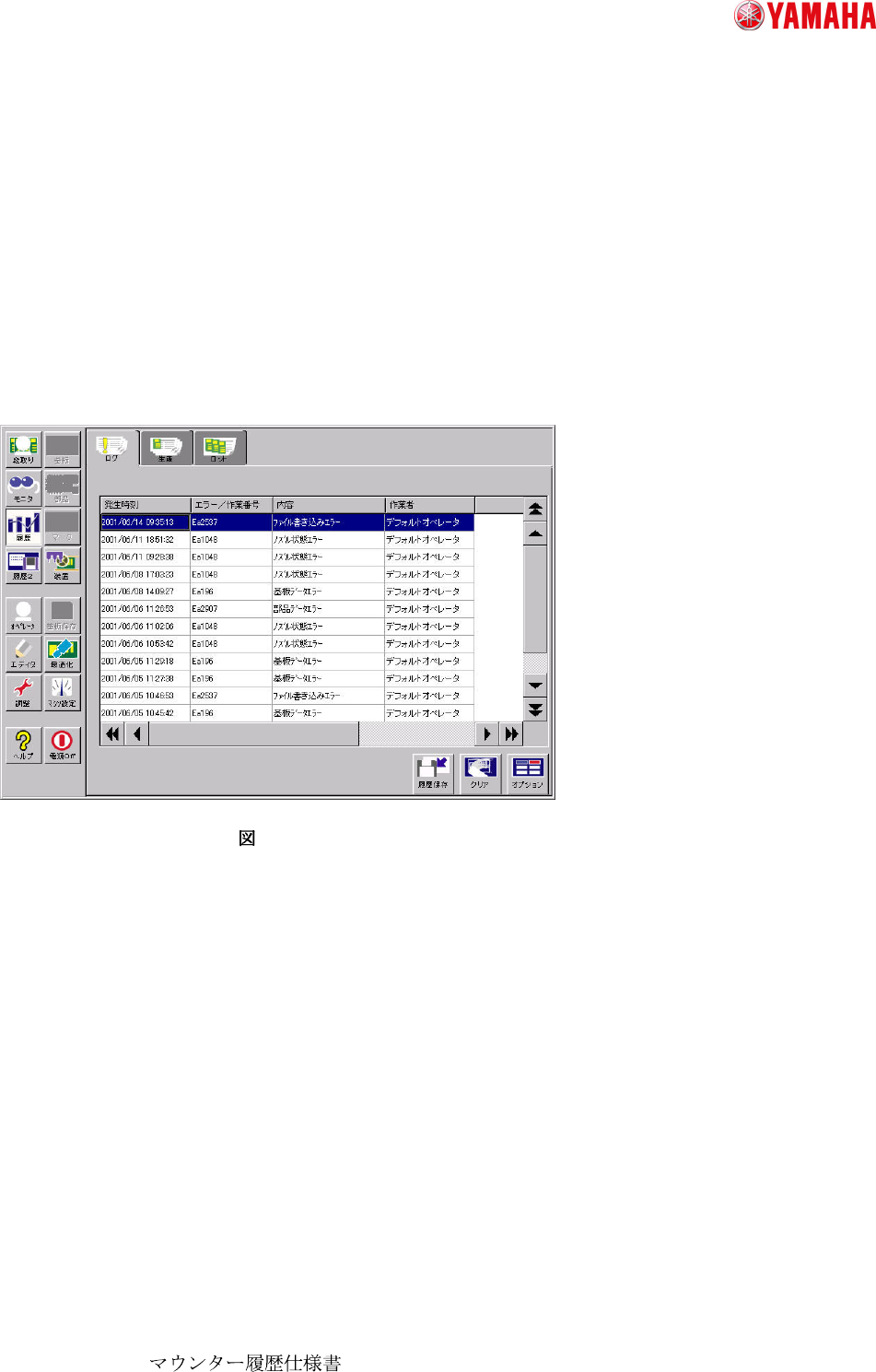ヤマハ発動 機株式 会社 IM 事業部 マウンター技術 部 ソフト開発グループ MDOC-SOFT 50011 H015931 _TT6094. .doc 6 / 58 2. 生産履 歴 生産履 歴 生産履 歴 生産履 歴の の の の 種類 種類 種類 種類 について について について について Xgシリー ズ以降マウン ターの履歴には、大きく 分けてログ形 態の履歴とデータのカウ ントを行う履 歴の2 種類があります。前…