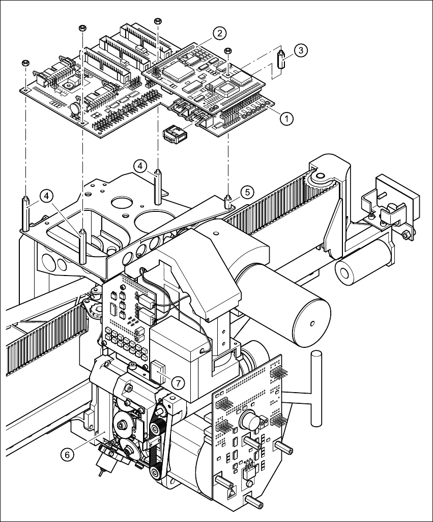(2) Velcro fastener for the ribbon cable of the ‘Pick up/Insert’ valve positioning drive