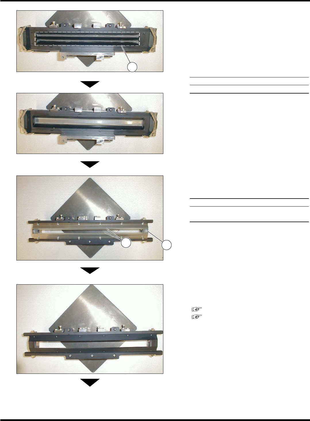 SP 80/SP 60 维修手册 1.4 140 小时检查 ( 一周一次 ) Page 1-44 12. 使用溶剂 (IPA 、酒精等 ) 清扫各部品。 ∗ 为了防止刀刃弯曲,擦拭刀刃时请一定要按照 同一个方向进行。 13. 组装清扫完成的部品。 • 请按照与拆卸时相反的顺序进行组装。 • 将印刷装置安装到 SP 主体上 ( 焊料筒头手册 ) ∗ 使用新料架时,料架设置完成后,请一定要剥 去封印纸。 ∗ 设置刀刃时,请将刀刃的端面和框架…