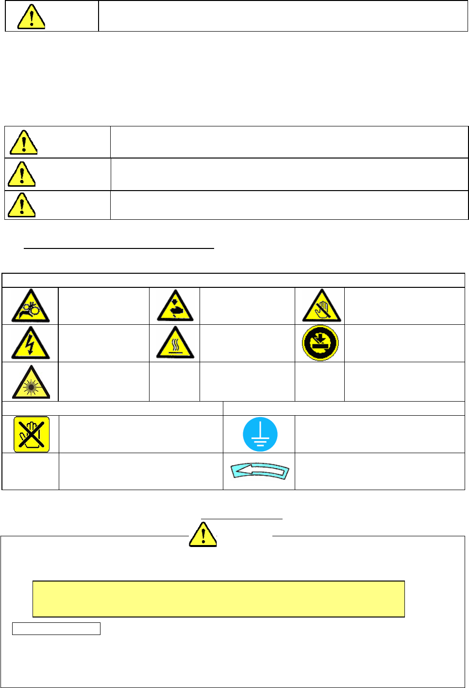 表示在进行 机器操作、保养时,如果当事人、第三者操作错误,或不防止该情况,