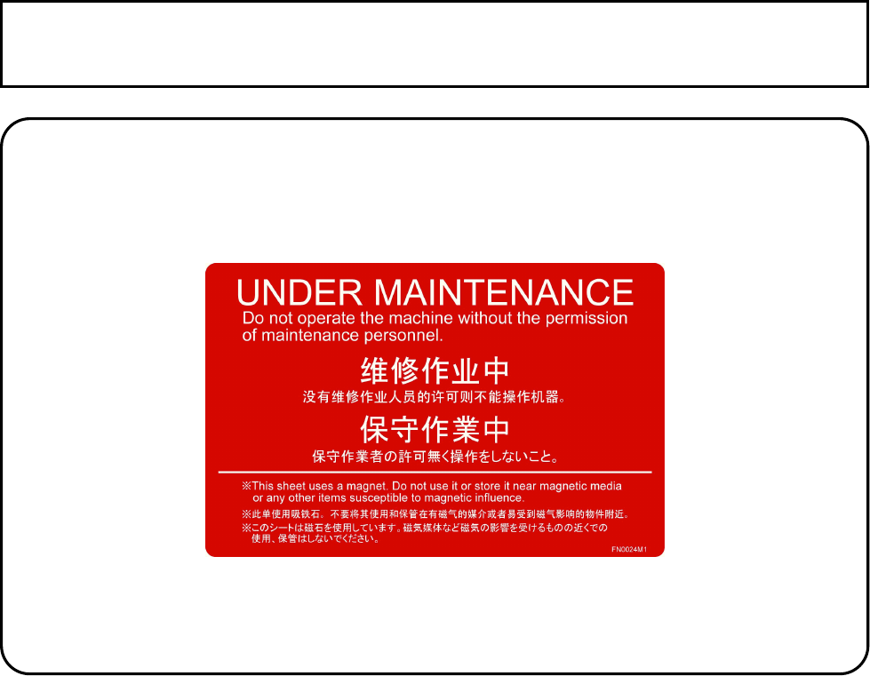 Before performing maintenance, affix the included warning sheets (see below) to prominent