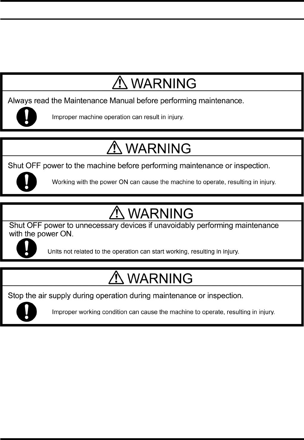 Before conducting inspection, read ‘Maintenance Manual / SAFETY PRECAUTIONS’ thoroughly.