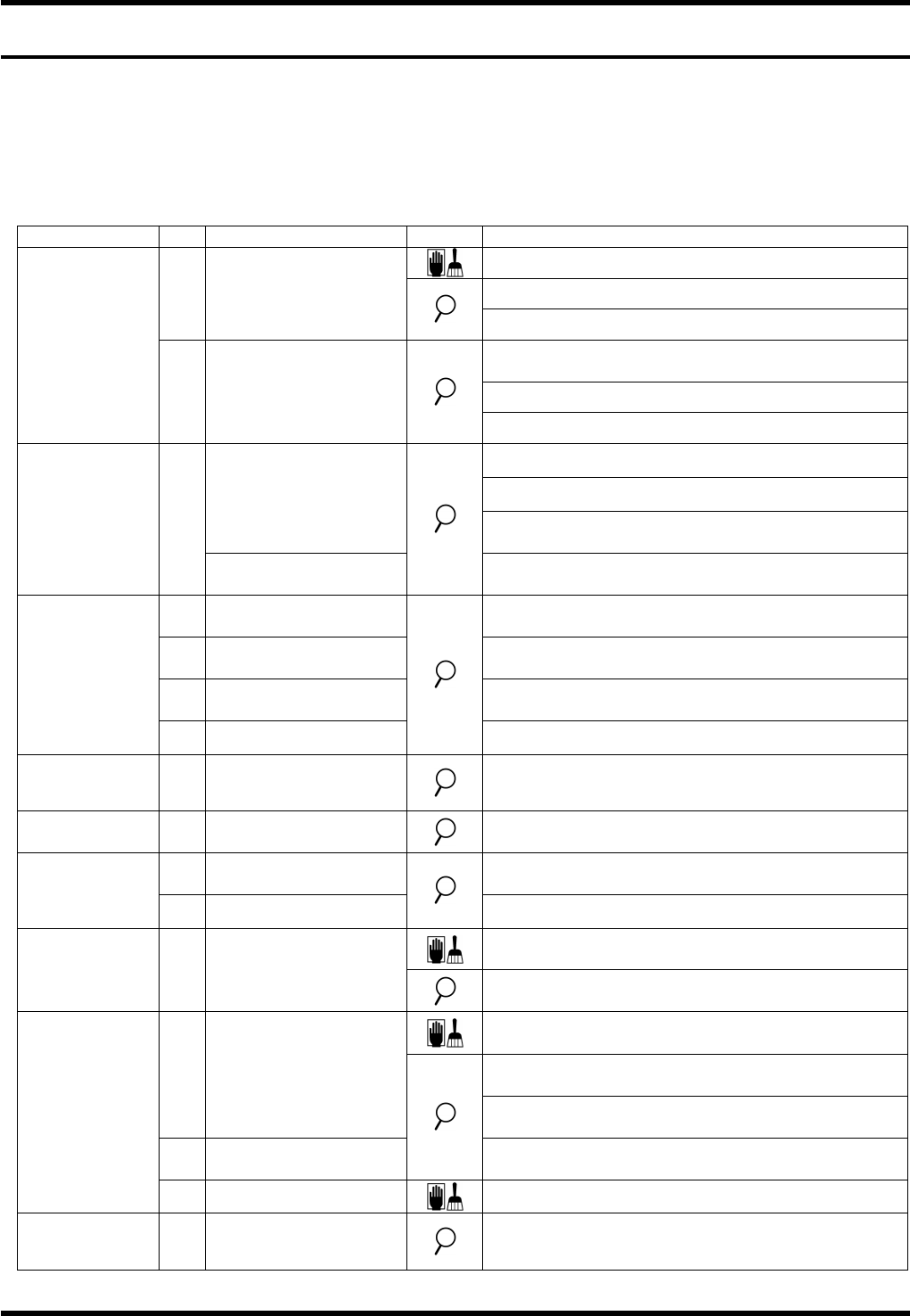 The following tables summarize the periodic inspection items that are to be performed daily.