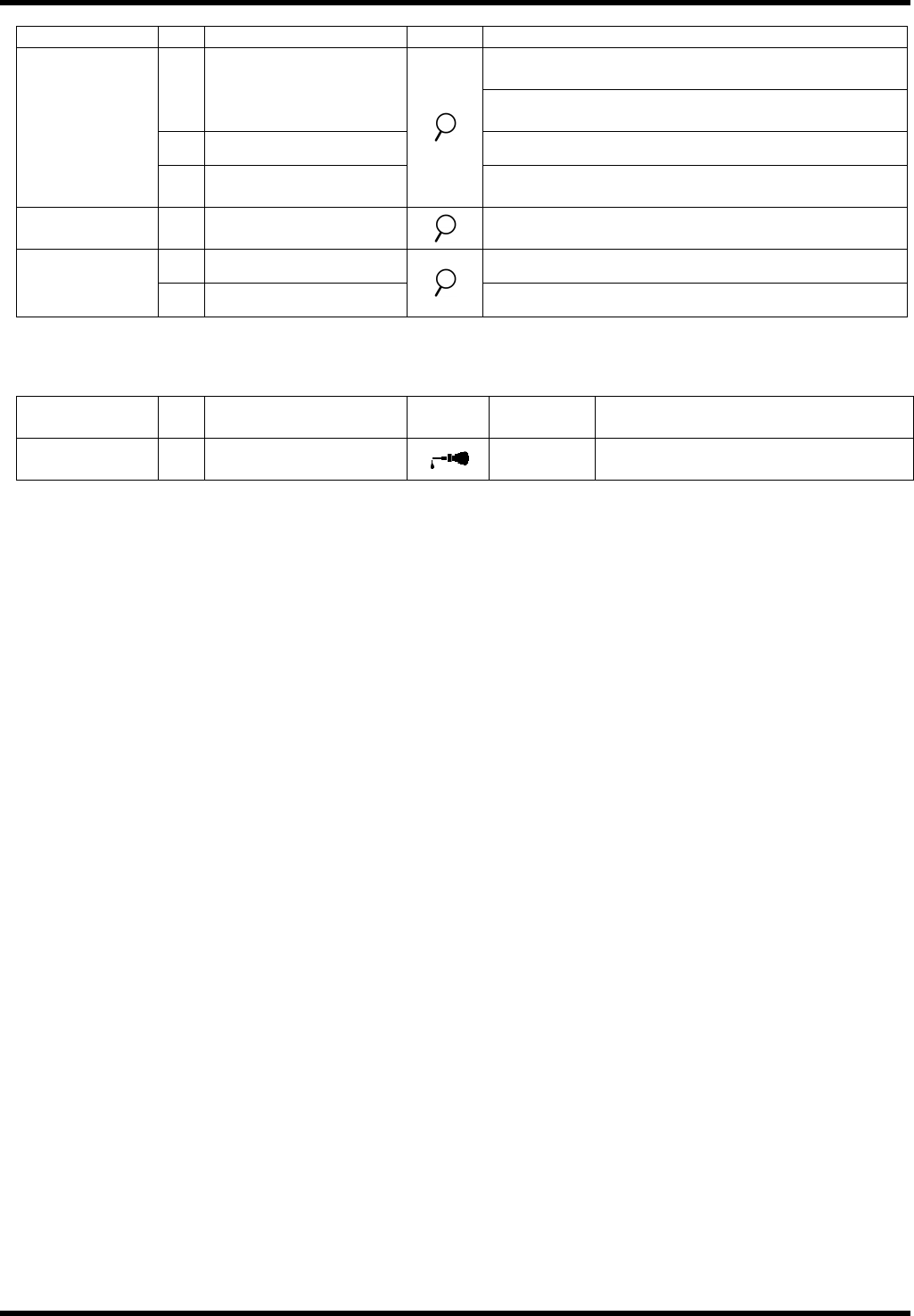 The following tables summarize the periodic inspection items that are to be performed weekly.