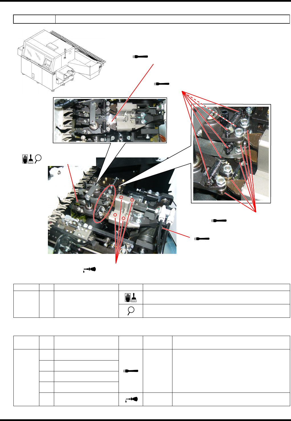 RL131 MAINTENANCE MANUAL 7.6 Part Process ing Units DA8MEC-Z1-M02-A 0 7.6-3 5. Hook 1. LM guide 4. Pusher cam 2. Grease nipple a. Lead cutter b. Lead cutter l ever 3. Grease nipple c. Sensor 7.6.3 V-cut Unit Unit No. N61…