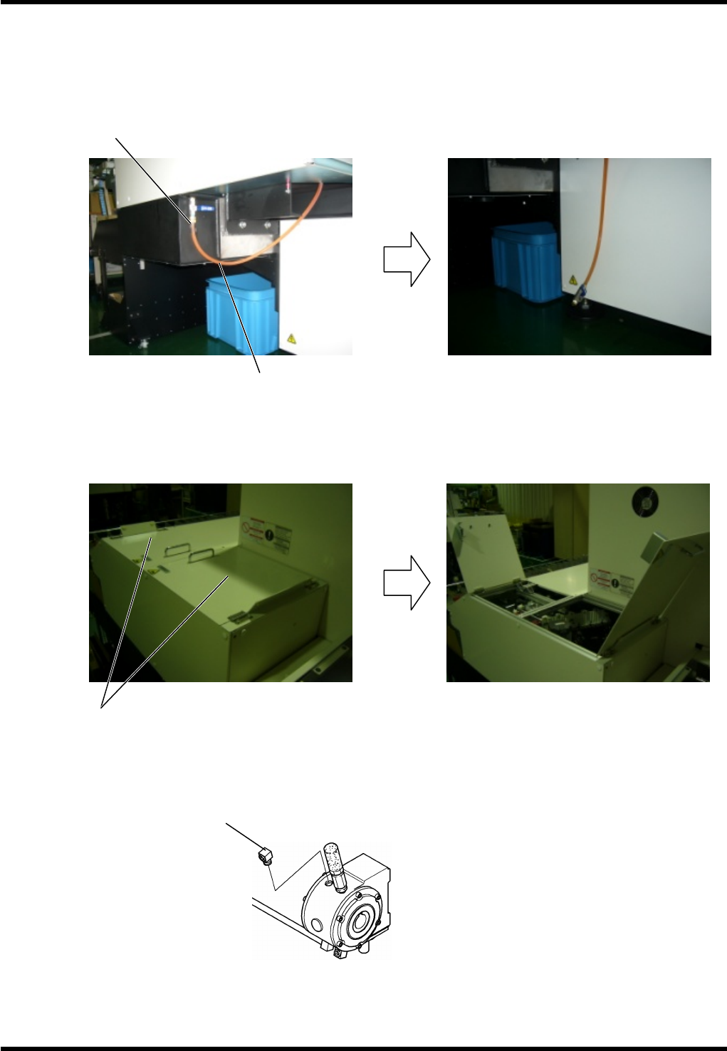 RL131 MAINTENANCE MANUAL 7.6 Part Process ing Units DA8MEC-Z1-M02-A 0 7.6-5 7.6.5 Replacing Oil (Reductio n Gear at t he Part Proc essing Dri ve Unit) 1. 1. Pull the hose f rom the hose clip to detach it. 2. Open the top…