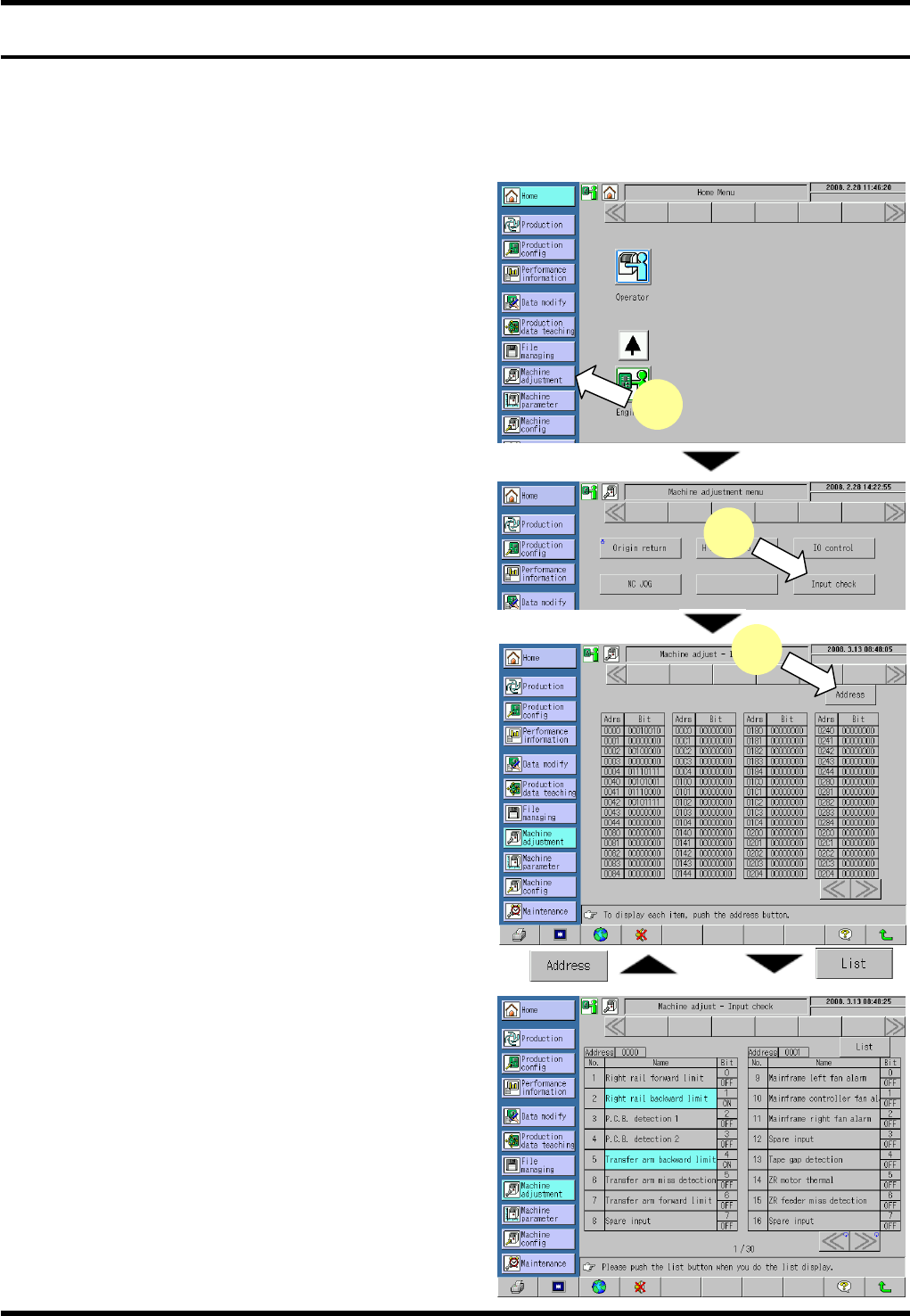 The “Machine adjust - Input check” screen