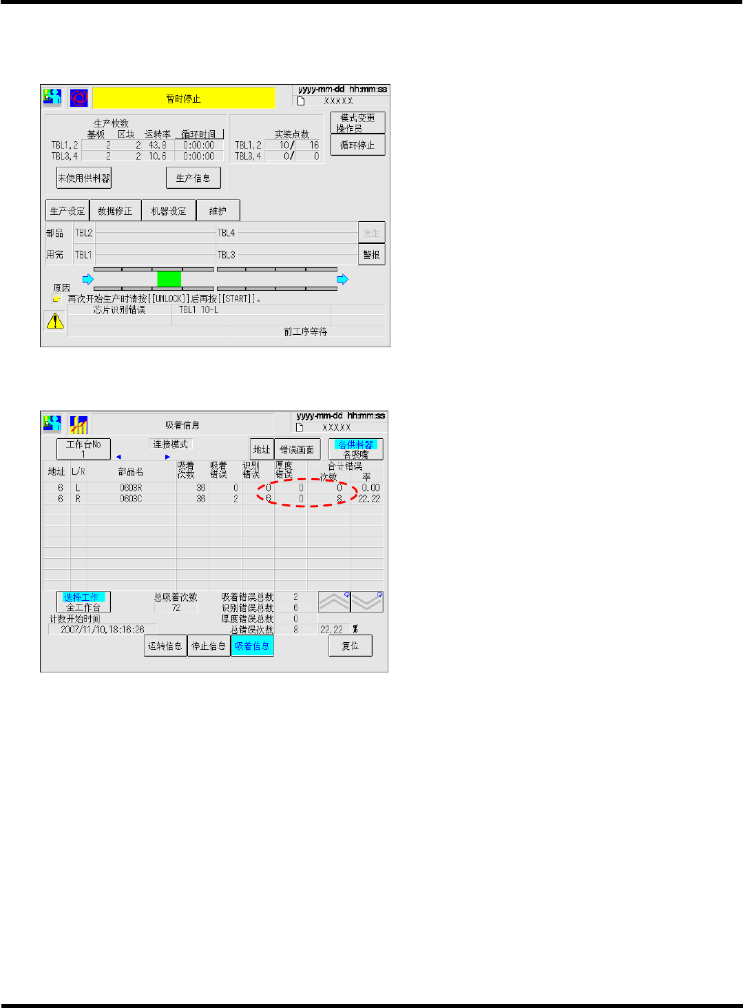 CM602-L 操作手册 4.4 芯片识别示教 Pa ge 4- 17 需进行芯片识别 的情形 发生下列故障时,请进 行芯片识别示教。 情形 1. 在生产中特定的供料器 发生了识别错误时 情形 2. 在生产管理信息的吸着 信息中, 识别错误在 特定 的装置内集中多发时 EJM4A -Pr-0001 EJM8A- C-OMC04-A01- 00 EJM8A -Pi-0006