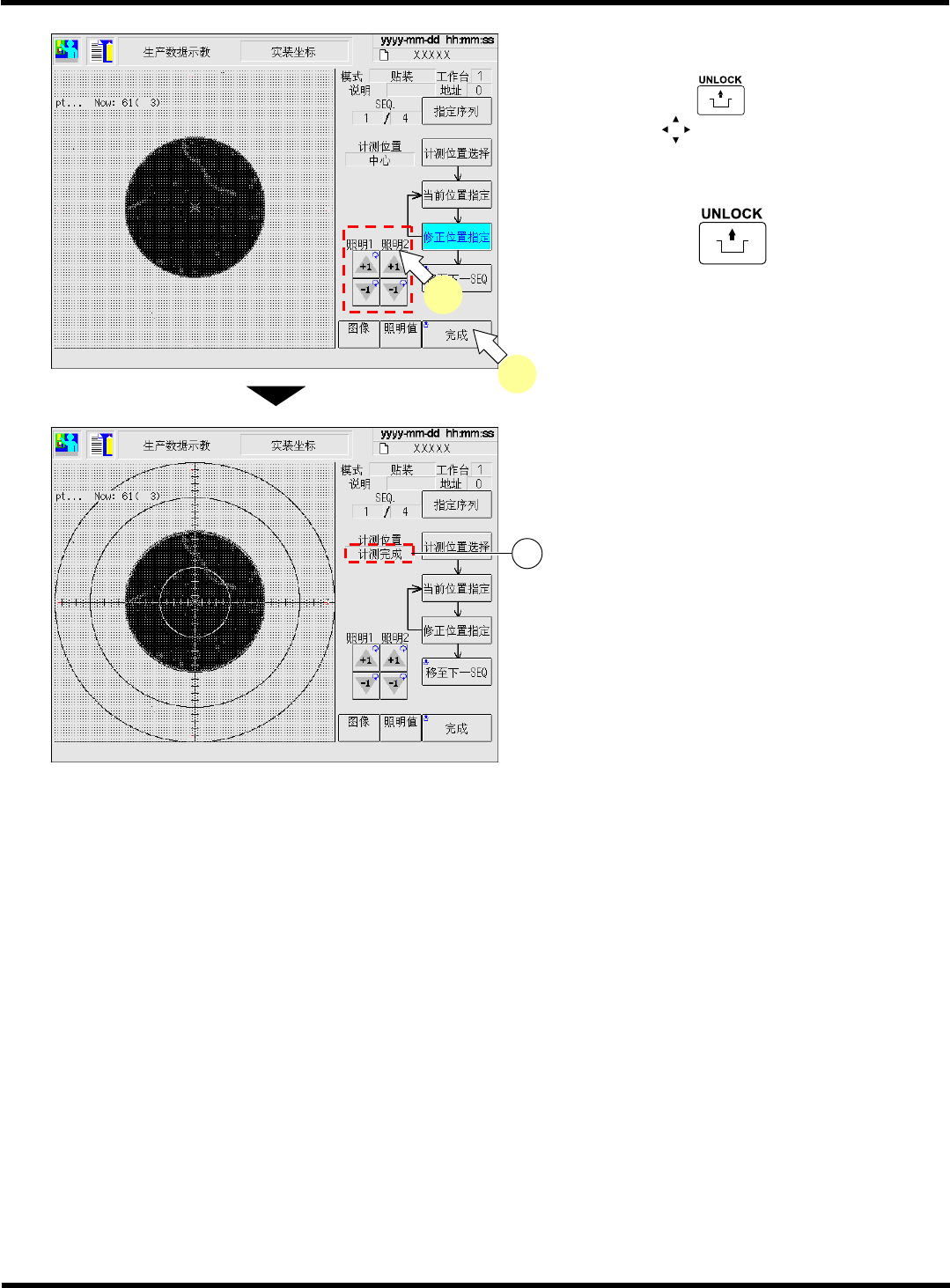 CM602-L 操作手册 4.6 吸着位置学习示教 Pa ge 4- 40 4.6 吸着位置学习示教 对生产时的吸着位置学 习的基础数据进行示教。 1. 按 [ 吸着位置学习 ] 。 2. 按操作面板的 → 。 3. 依次进行示教时, 按 + [ 次吸着位 置移动 ] 。 • 吸头照相机移至吸着位 置。 ∗ 指定任意供料器地址时 ,请按 [ 供料器选择 ] 。 下一页 EJM8A- C-OMC04-A02- 00 1 EJM8A -Dm…