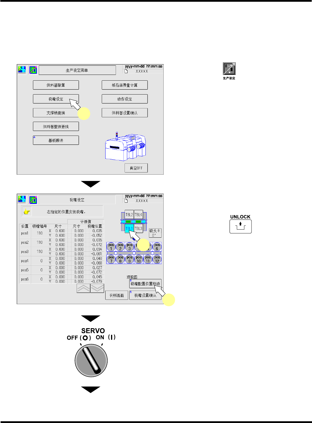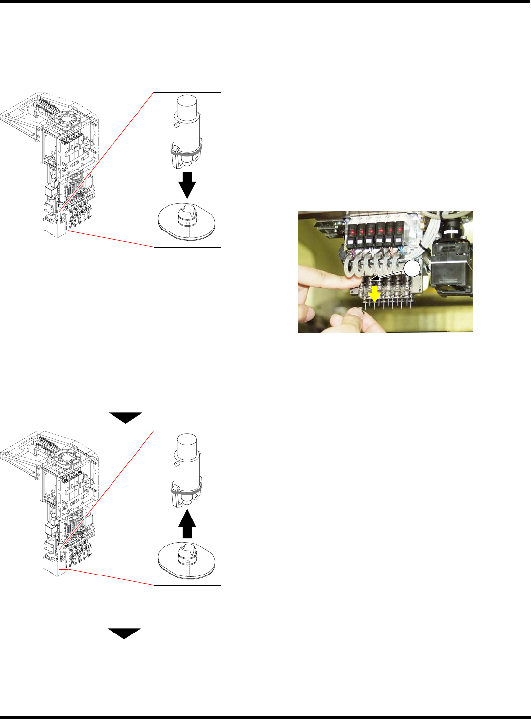 CM602-L 操作手册 5.5 吸嘴的交换 Pa ge 5- 14 7. 将箱子等物放在对象吸头装置的下方。 ∗ 请确保即使在吸嘴座的 夹具等发生脱落时,吸 头也不要掉落在本机内 。 8. 从吸嘴座上取下吸嘴。 • 高速吸头 (12 吸嘴 ) 时 请在按下黑色支座部 的同时,将吸嘴向正 下方 向拔出。 若将吸嘴向斜方向拔出, 有可能导致夹 具的脱落。 ( 请参照照片 ) • 若不按下黑色支座部 的状态下取下吸嘴, 这 可能会成…