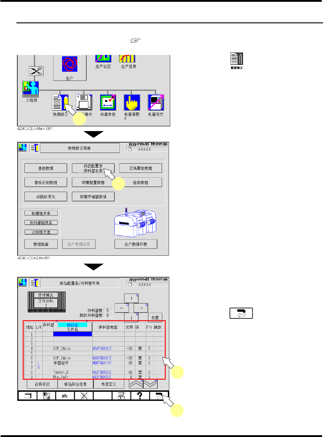 为避免生产出不良基板,请按照如下的步骤确认数据和设置在供料器工作台的生产材料是否有误。