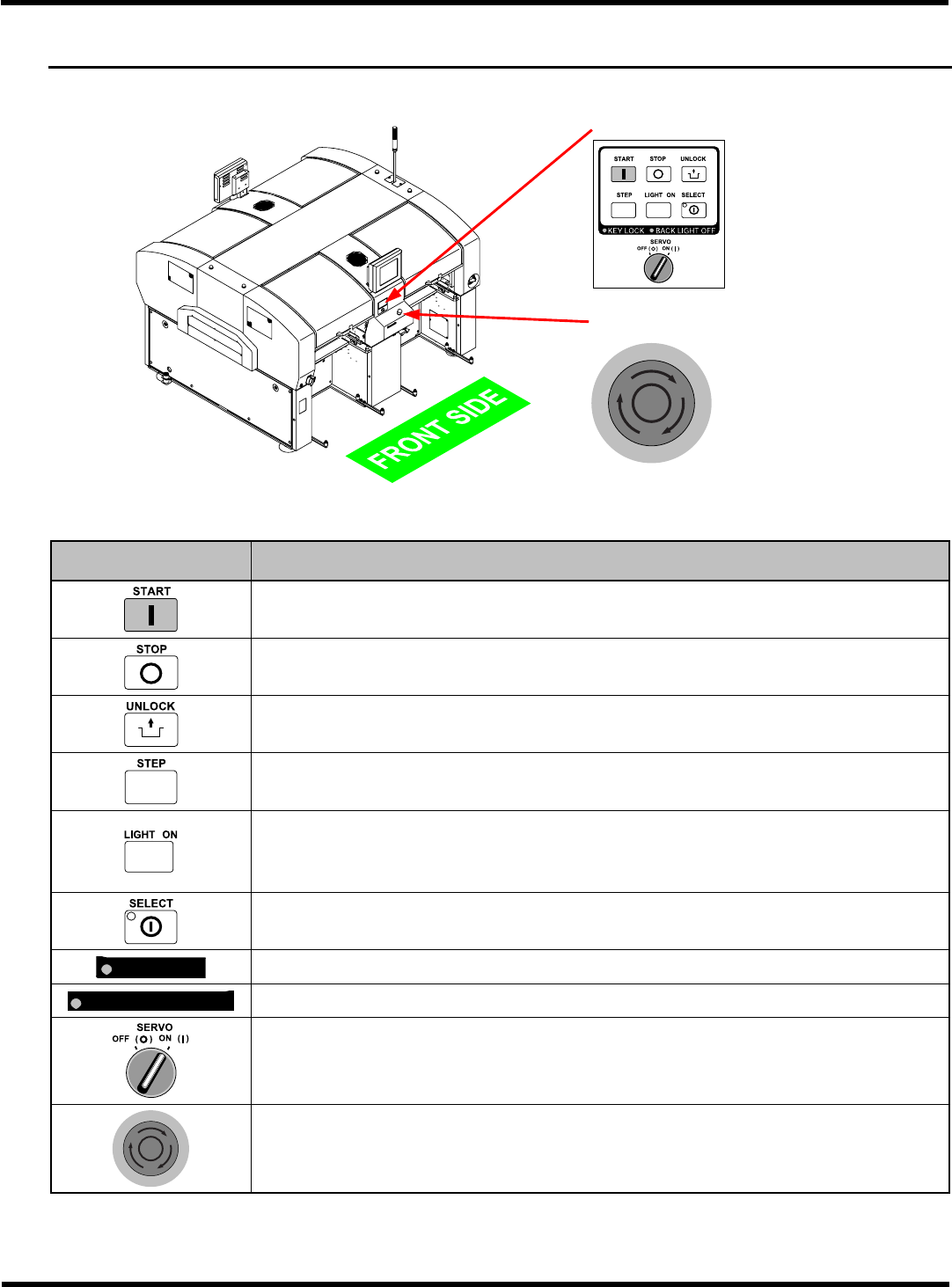 电机的电源开关。将手伸入本机可动部位内进行作业时请务必使开关置于