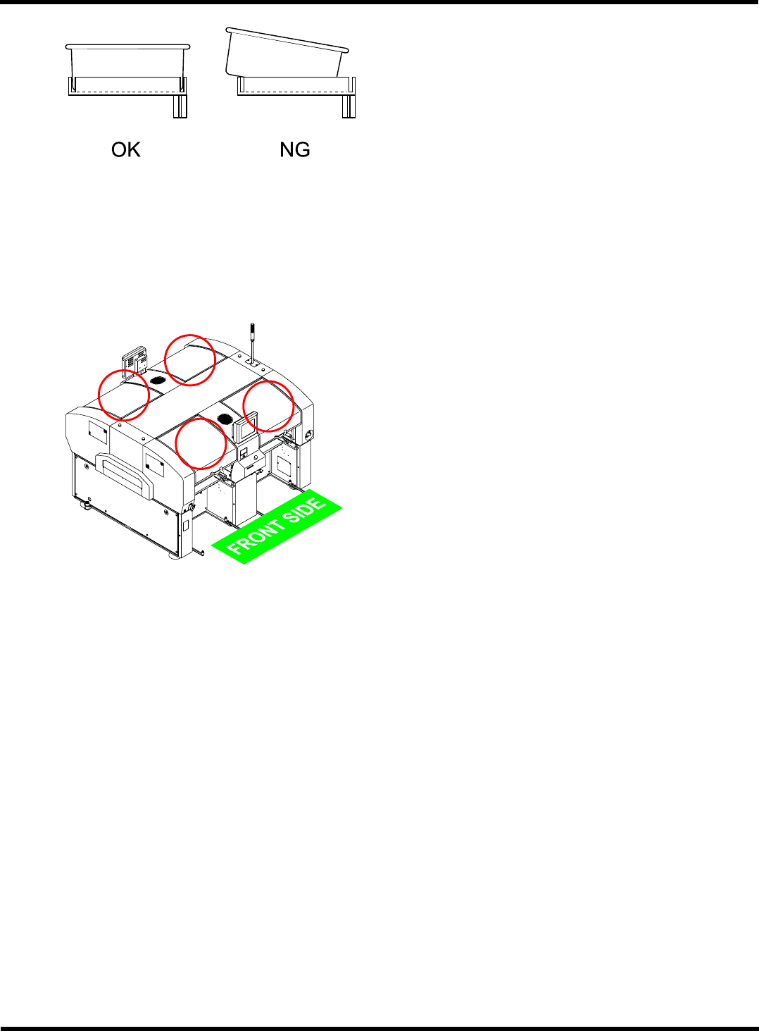 CM602-L 操作手册 2.2 生产前 Page 2-4 3. 确认废弃箱的位置 废弃箱的设置是否正确 ? 是 → 进行第 4 步 否 → 请按照左图的 “OK”, 正确设置。 ∗ 如果设置不正确,有因 吸嘴和吸头互相干涉而 造成破损的可能性。 4. 安全盖开关的确认 安全盖是否全部关闭 ? 是 → 进行 “2.2.2 运转气压的确认 ” 否 → 请关闭前后安全盖。 EJM4A-A A01 EJM8A- C-OMC02-A01- 00…