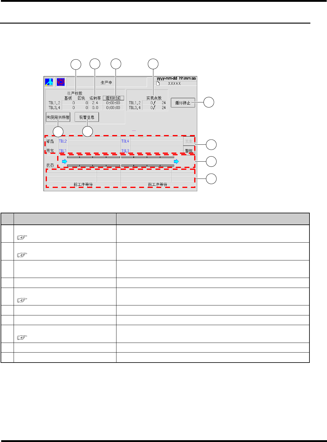 显示基本的生产信息、部品用完的供料器地址、运转情况。