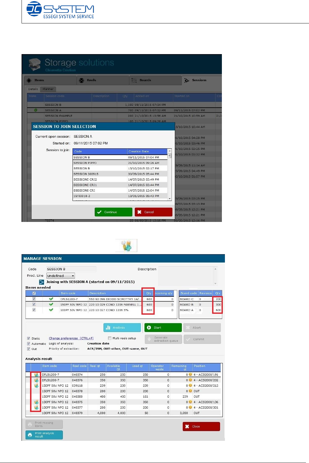 We can see the quantities are changed and the software marks the reels