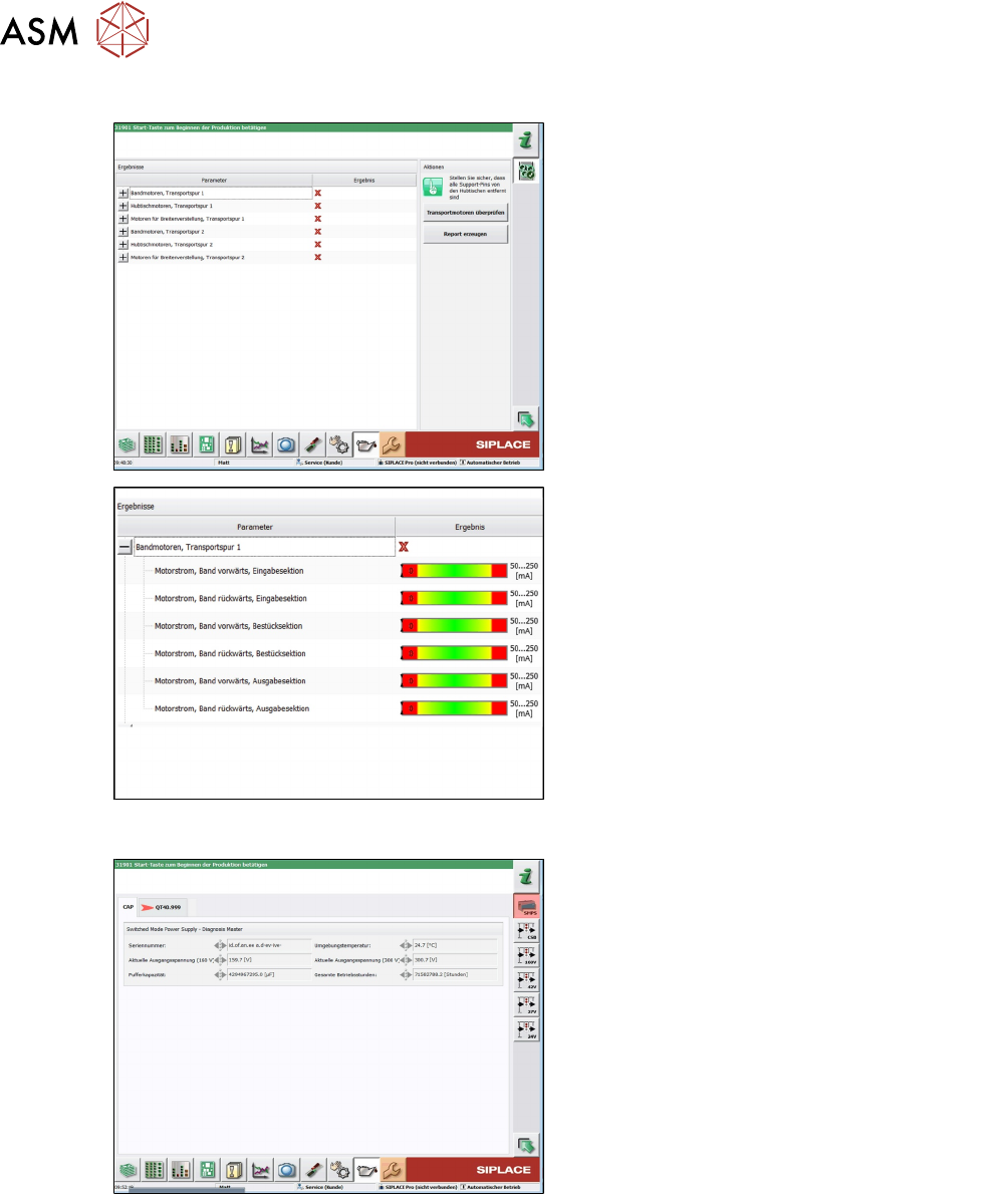 9 Stationssoftware - Überblick 9.7 Wartungs-GUI 168 Technisches Training FSE SIPLACE TX-Series 08/2018 Verifizierung – Transportmotor-Überprüfung Mit dieser Funktion werden die Transportmotoren abhängig vom Strom und den…