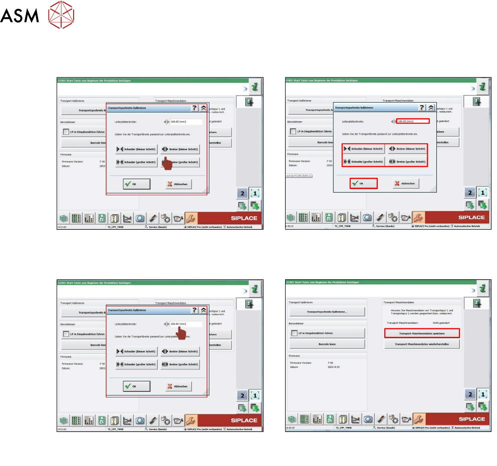 6.6.2.3 Transportbreite kalibrieren