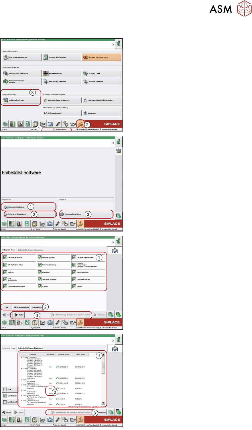 9 Stationssoftware - Überblick 9.8 Download der Embedded Software (eSW) Technisches Training FSE SIPLACE TX-Series 08/2018 171 9.8 Download der Embedded Software (eSW) 1. Die Funktion Embedded Software Download kann mit …