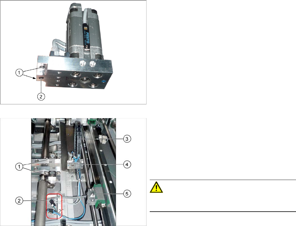 ► Lösen Sie die Befestigungsschrauben der Zylindereinheit am Führungswagen und nehmen Sie die-
