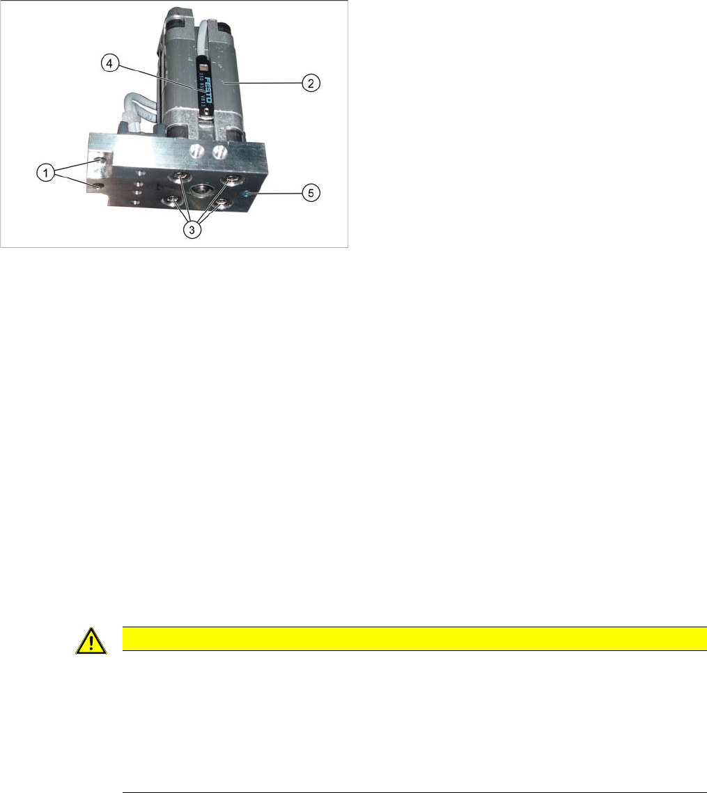► Lösen Sie die beiden pneumatischen Verbindungen zum Kurzhubzylinder. Markieren Sie sich dabei