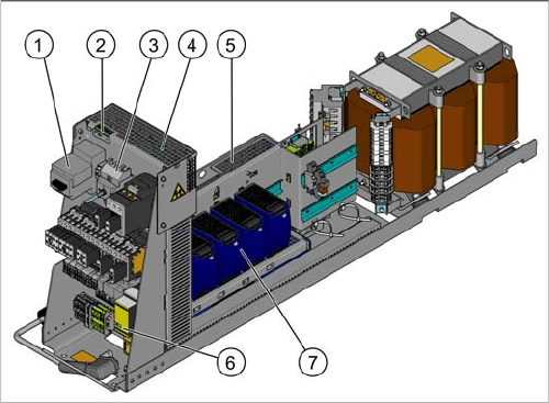 Die Stromversorgung ist auf einem kompakten Einschub-Modul montiert und zwischen Stellplatz 3 und