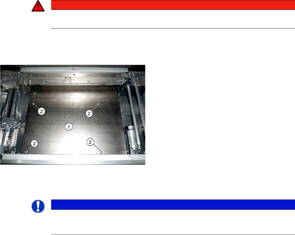 ► Lösen Sie die Befestigungsschrauben (Senkkopfschrauben) der Hubtischplatte, aber nehmen Sie