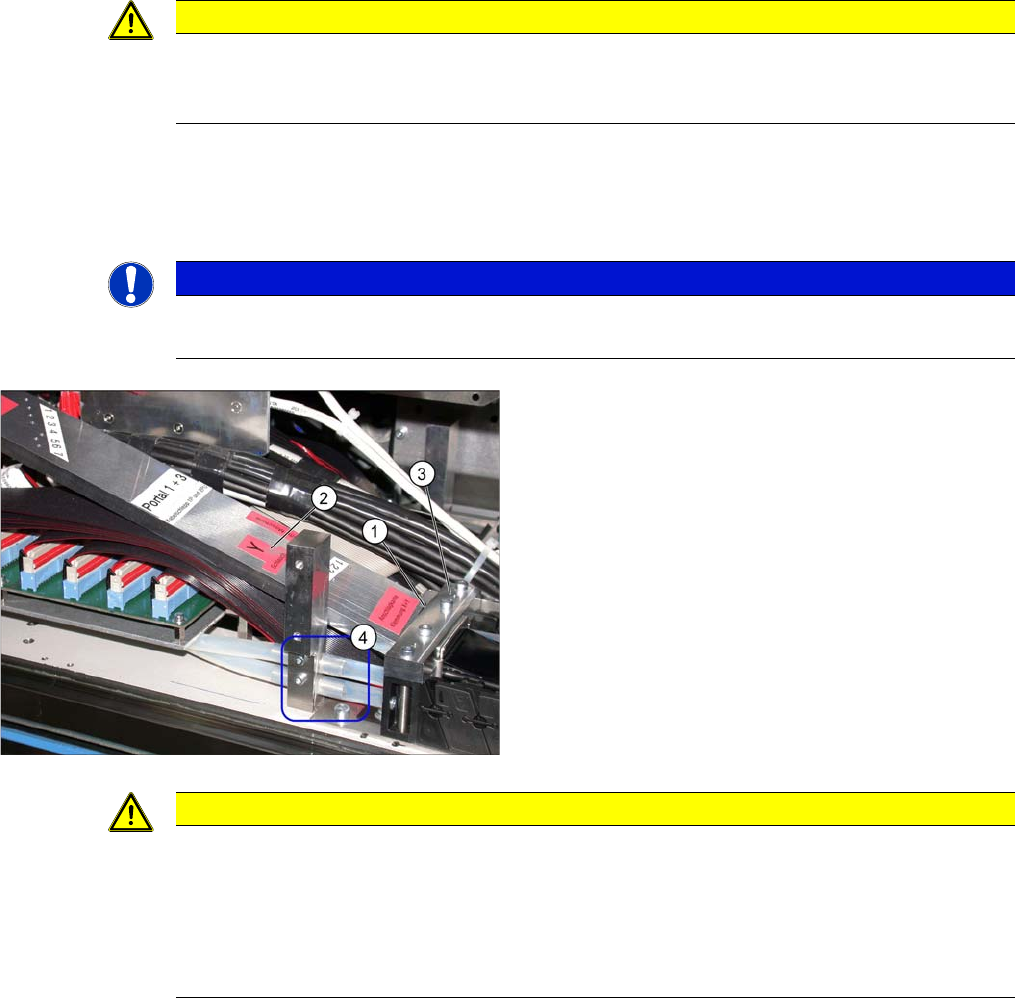 ► Entfernen Sie alle nötigen Kabelbinder am Portal-Interface (4) und stecken Sie die Flachbandkabel