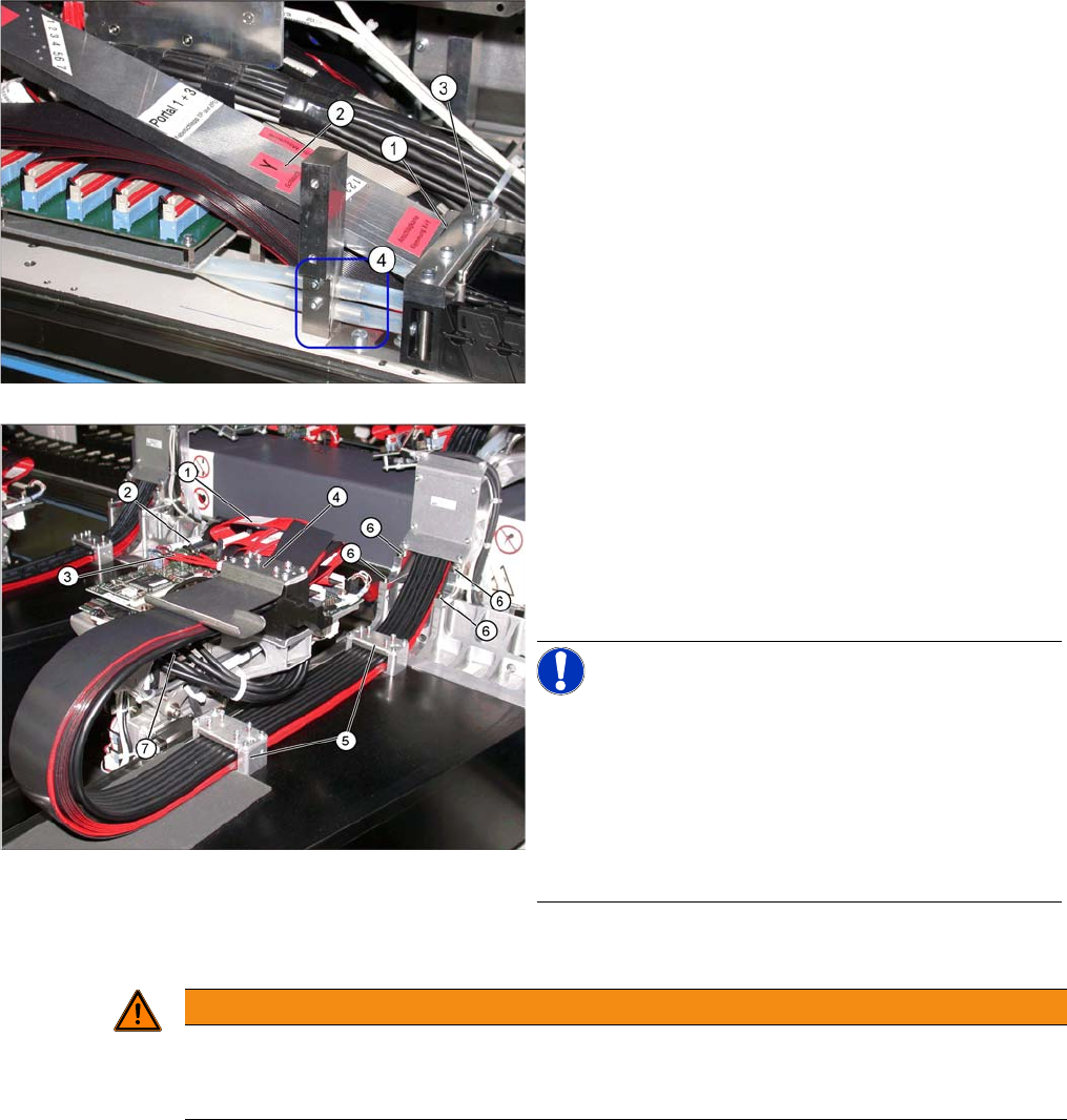 Servicearbeiten Portale 3.5.5 Kabelschlepp tauschen 82 Serviceanleitung SIPLACE SX4/DX4 ► Ziehen Sie die Schläuche am Pneumatikverteiler (7) ab. ► Lösen Sie die 4 Befestigungsschrauben (6) der Kabelsch leppkonsole und en…