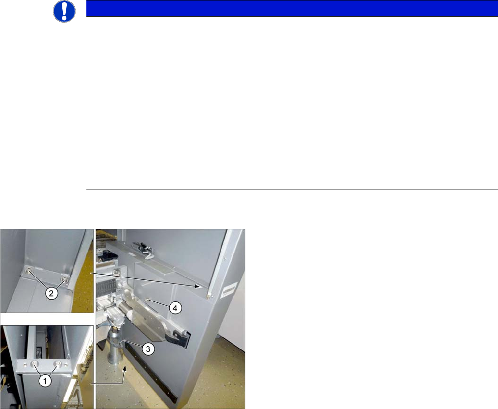 ► Lockern Sie die obere und untere Befestigungsschraube der Monitor-Halterung an der Maschine