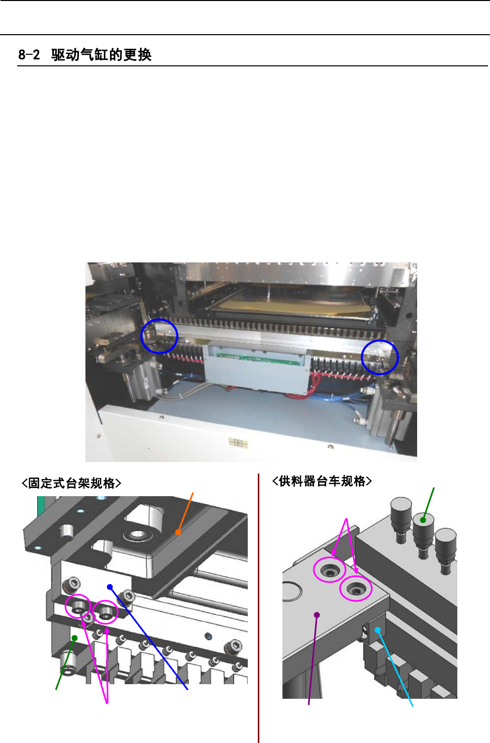 3) 松开台架上升气缸杆和提升气缸轴,并卸下。(更换侧)