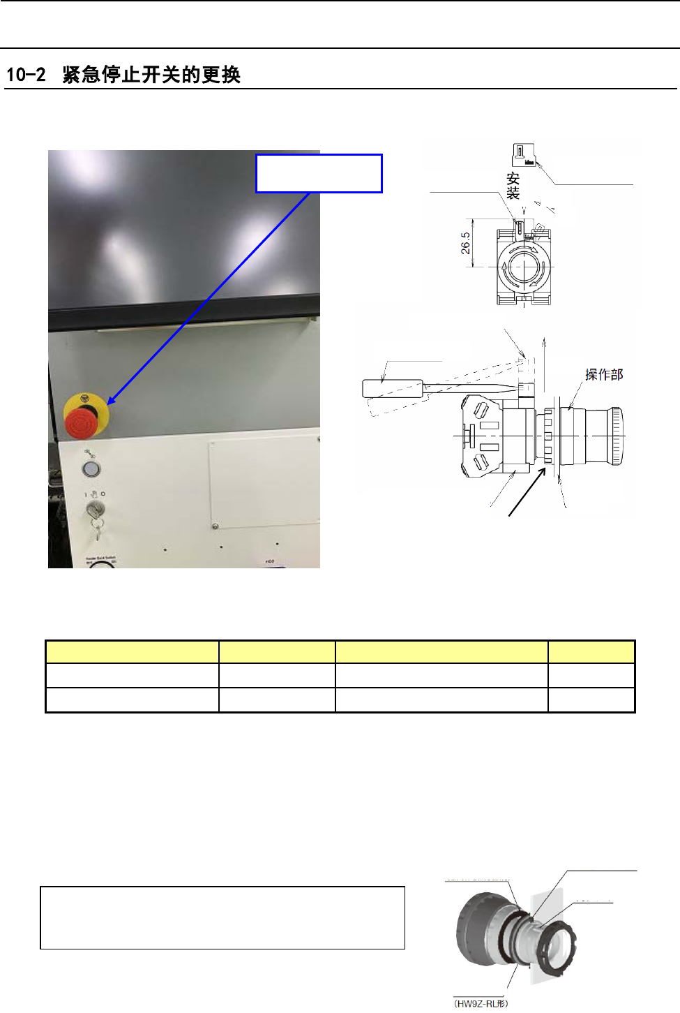 3) 安装方法:拆下锁定螺母,确认橡皮垫圈正常安装后,将操作部从面板前面穿过面板孔。 使