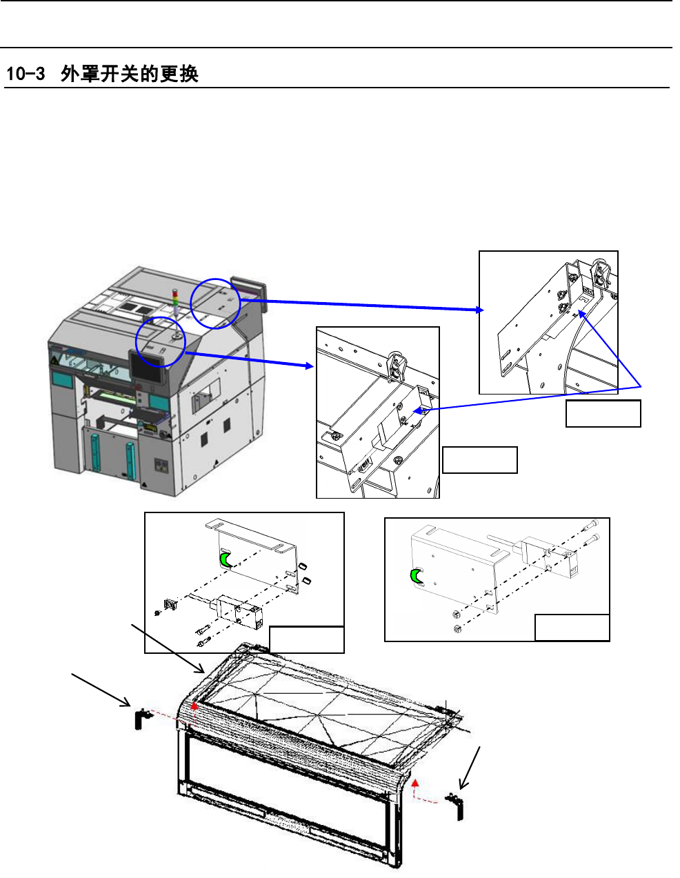 2) 切断束线带,拆下 M4 螺栓,更换①外罩的开关主体。
