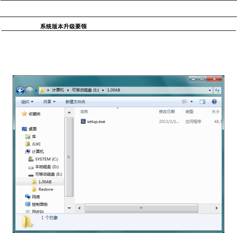 维修调整要领书 12-32 12-2-5 JM-50 在存在某一 版本 JM-50 系统的基 础上, 为了版本升级 而安装新版 本的 JM-50 系统时, 操作步骤如 下。 1) 请准备好装 有系统程 序安装文件的 USB 存储器等。 2) 按 Windows 的开始按钮, 从开始菜单的程 序中启动资源管理器 。 3) 从第 1 )步中准备好 的系统程序安装盘 中选择 Setu p.exe 。 在资源管理 器上双击 所选择的 Setup…