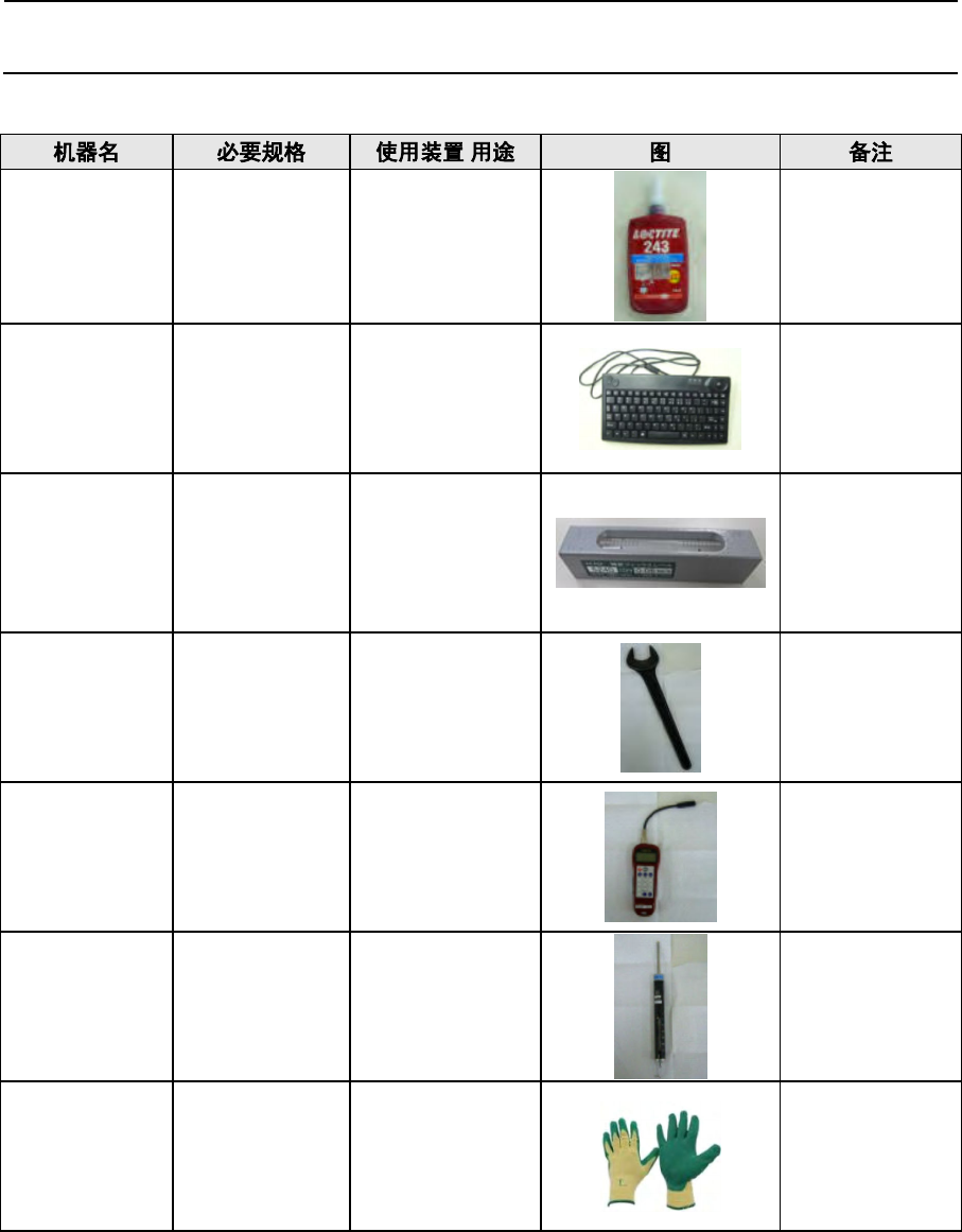 维修调整要领书 B-1 JM-50 / 刻度尺 刻度值: 0. 5mm 所有装置共用 游标卡尺 刻度值 : 0.05m m 所有装置共 用 杠杆千分表 刻度值: 0.01m m 所有装置共 用 杠杆千分表 刻度值: 0.002m m 所有装置共 用 German 表架 所有装置共 用 万用表 所有装置共 用 扭矩扳手 ( 螺丝刀 ) 1.3 ~ 3. 7N/m 所有装置共 用 / 管理 螺丝紧固扭 矩 与 M3 、 M4 内六角…