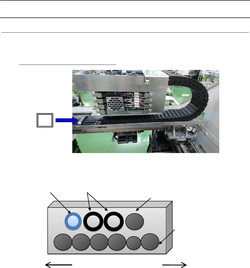 请调整到电缆拖链的端部位于XY拖链电缆的记号(白线)中央。