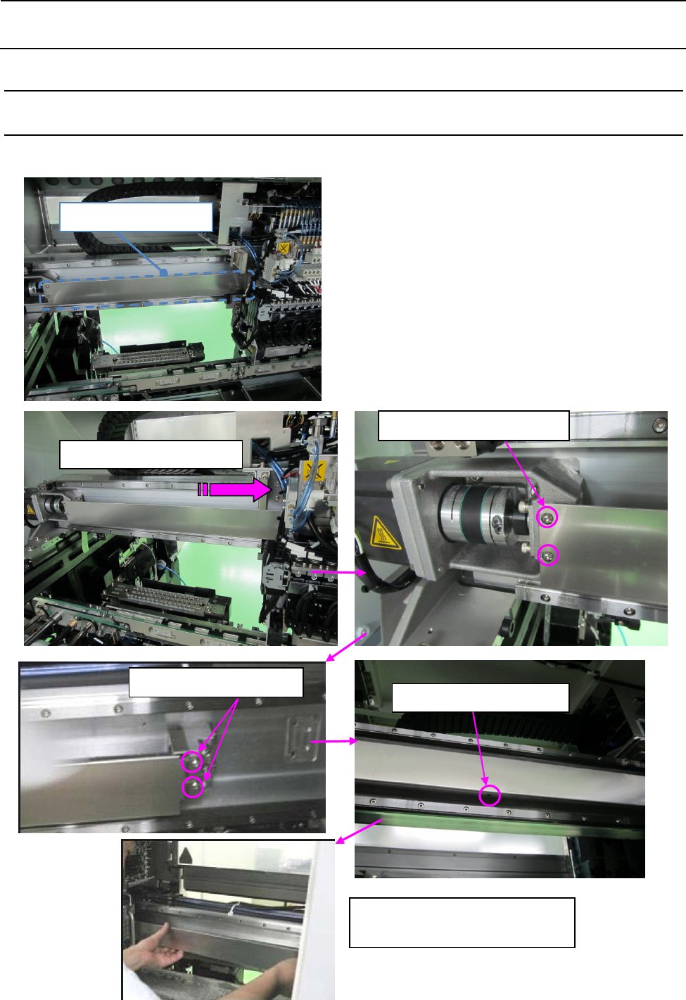 维修 调 整 要 领 书 1-6 X 滚珠螺杆的更换 1-6- 1 更换 X 滚珠螺杆的准备 ( 1 ) X_ OIL_GU ARD_F 的拆卸 将 HEAD_PLATE 向右侧靠。 拆下 SM30 4065 2TN 2 个 。 拆 下 SM 3 0 4 0 6 5 2 T N 2 个 。 拆下 SM30 3055 2TN 4 个。 将 HEAD _PLATE 向左侧靠, 拆下 X _OIL_GUARD _F 。 X _OIL_GUAR…