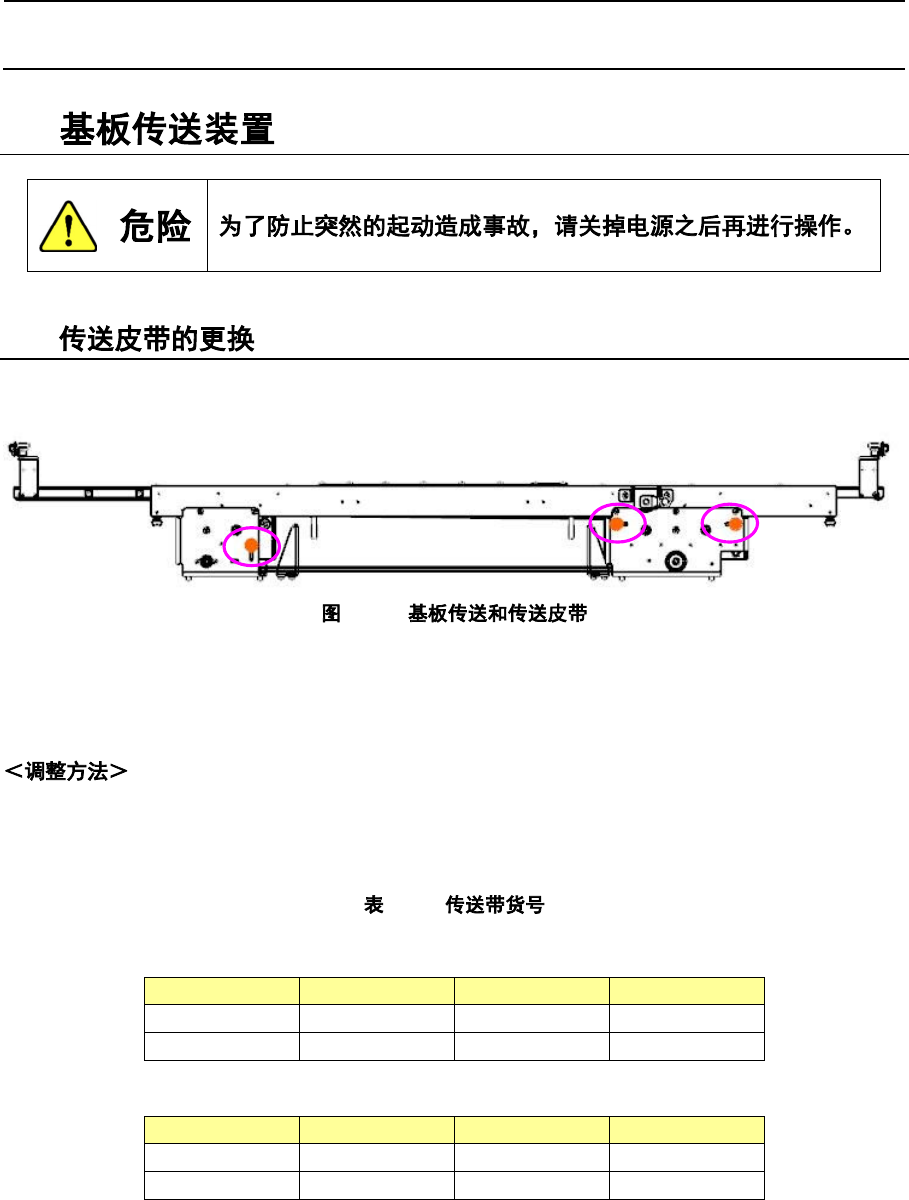 3) 调整传送皮带的张力时,先测定没有施加张力的皮带长度,移动长孔部的传送皮带轮的位置,