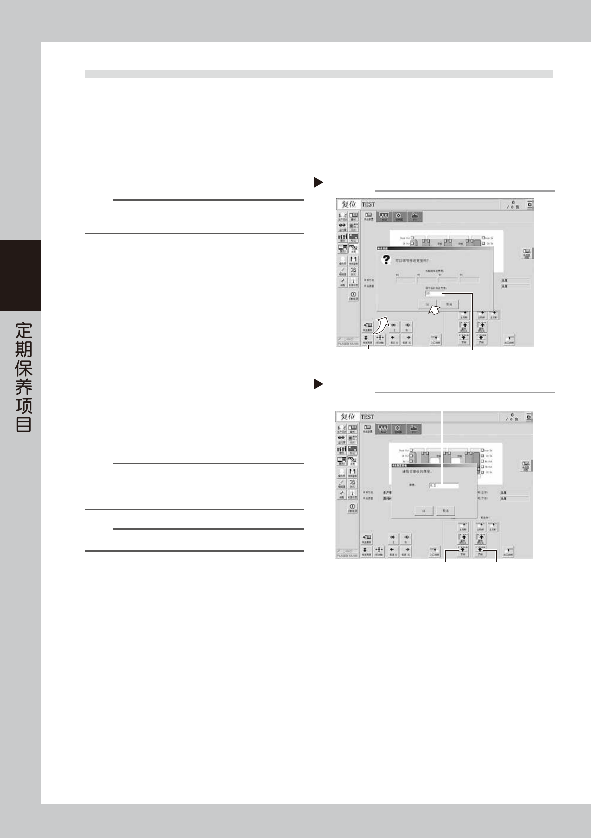 1. 按 [ 顶板 ] 按钮,打开“传送装置顶板”画面。