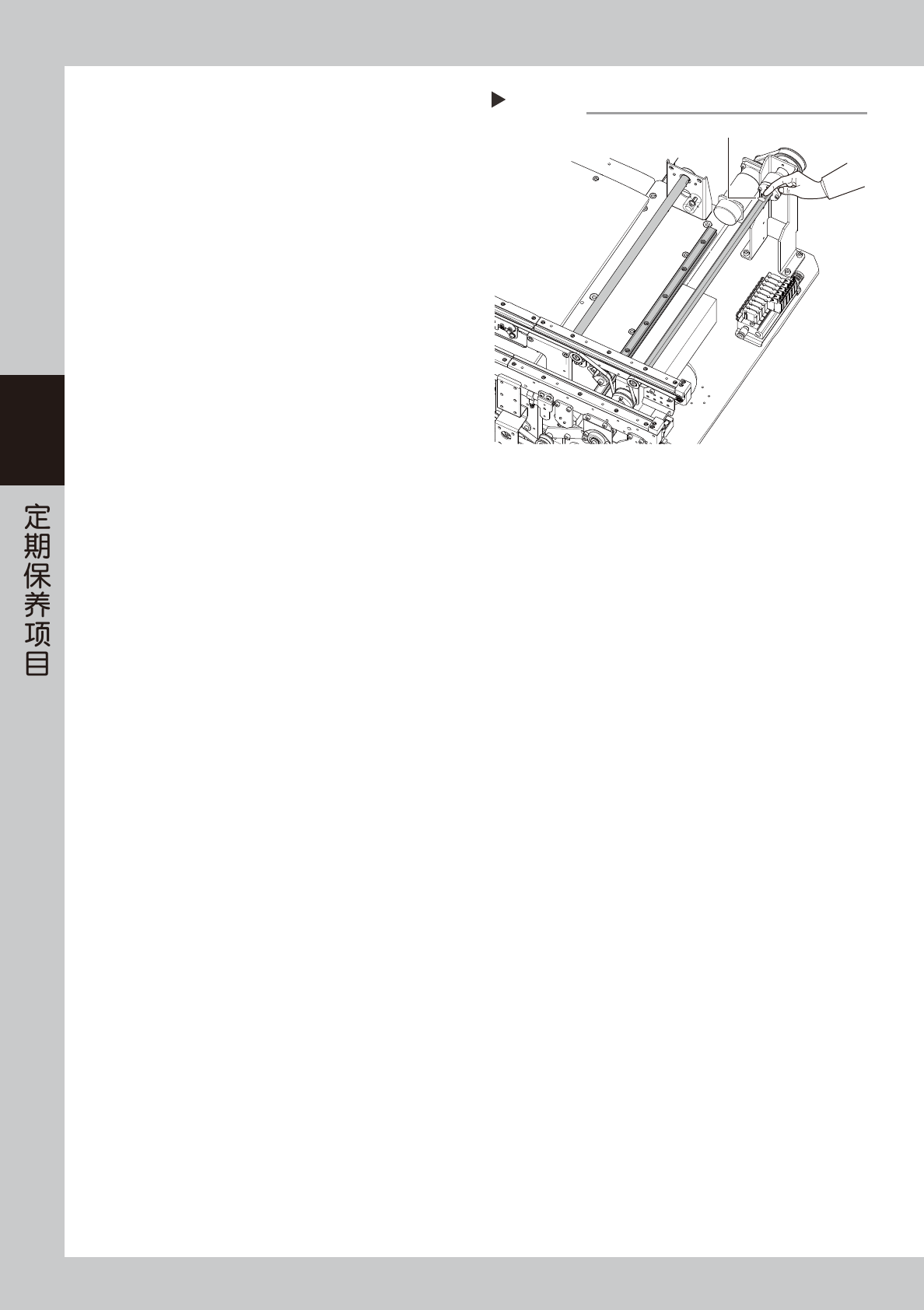 3. 用无尘擦拭纸等擦去滚珠丝杆、六角轴、导轨