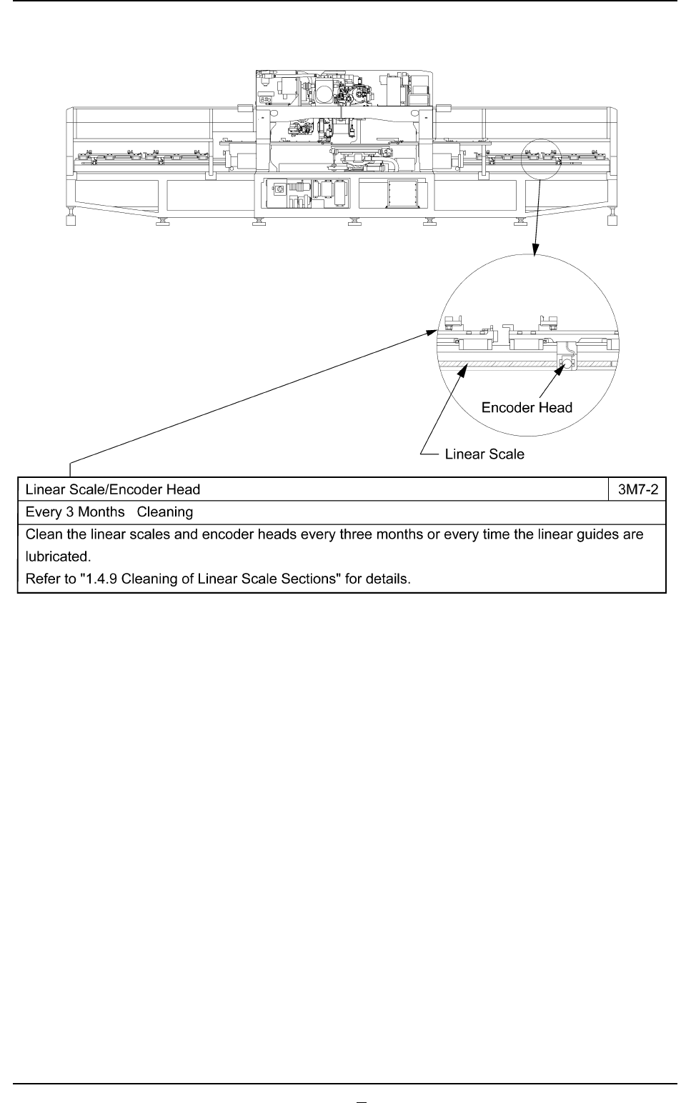 (13) Feeder Carriage Section 1.3 Maintenance Spots 0307-005 1-27 AFO01ETRP Fig. 4A28 T op V iew of Machine Linear Guide Rails 1M13 Every Month Cleaning Clean the carriage with an oiled rag. Y oke Sides of Linear Motors 1…