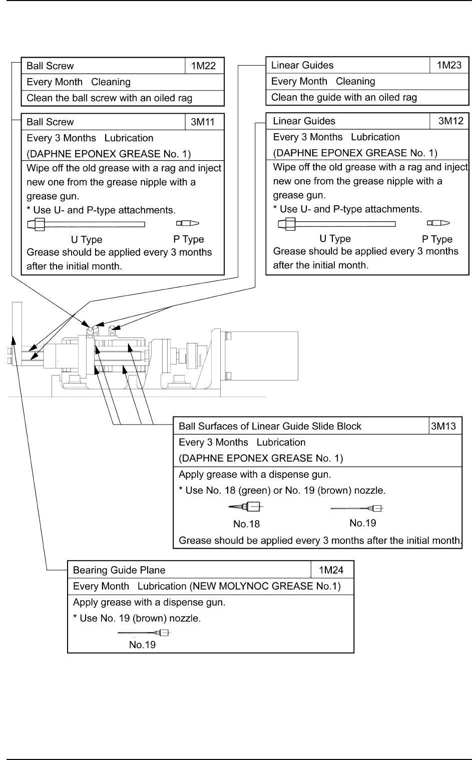 Every 3 Months Lubrication (DAPHNE EPONEX GREASE No. 1)