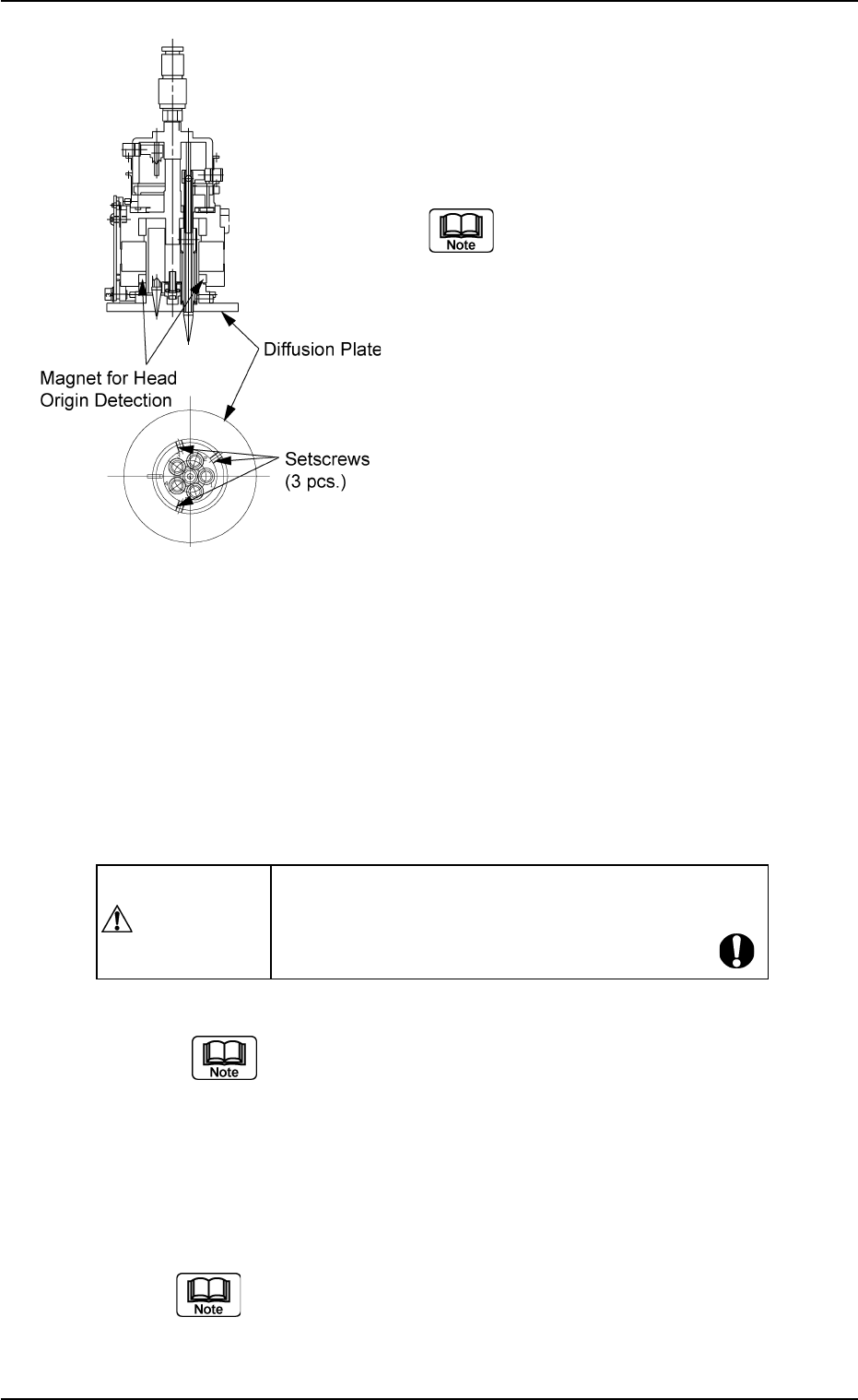 (4) Attach the diffusion plate to the head. T ighten 3 special anti-loosening screws (silicon-varnished ones) with a tightening torque of 10 kgfcm, using the 2 mm bit (standard accessory part: 630 1 16 3673). Do not allo…