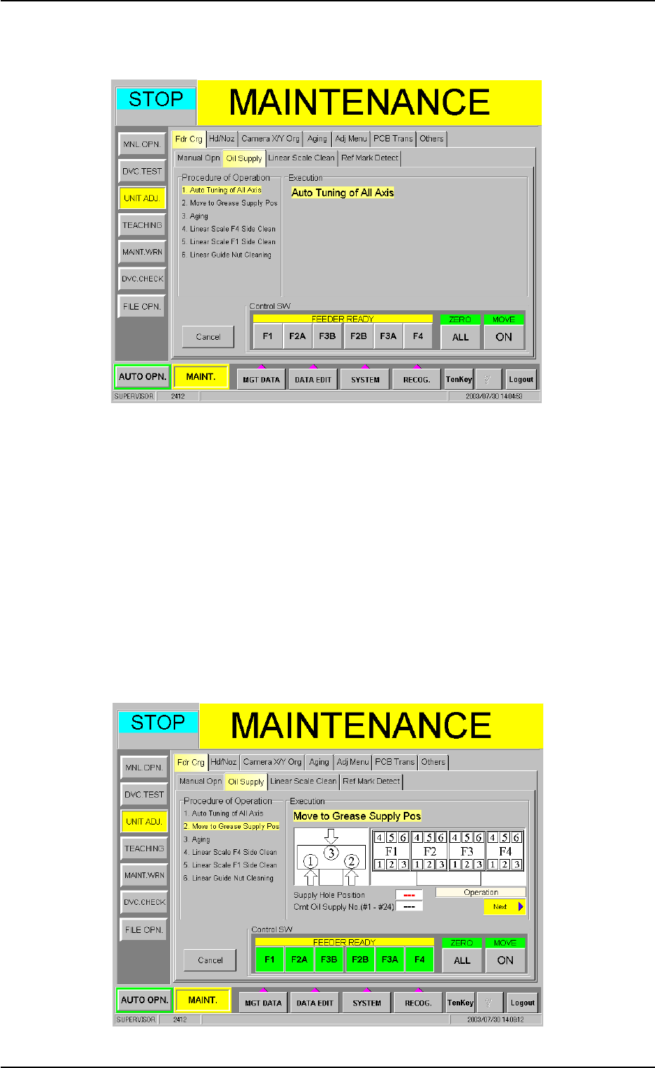 (2) When the [Start Oil Supply] button is pressed in the "Oil Supply" tab