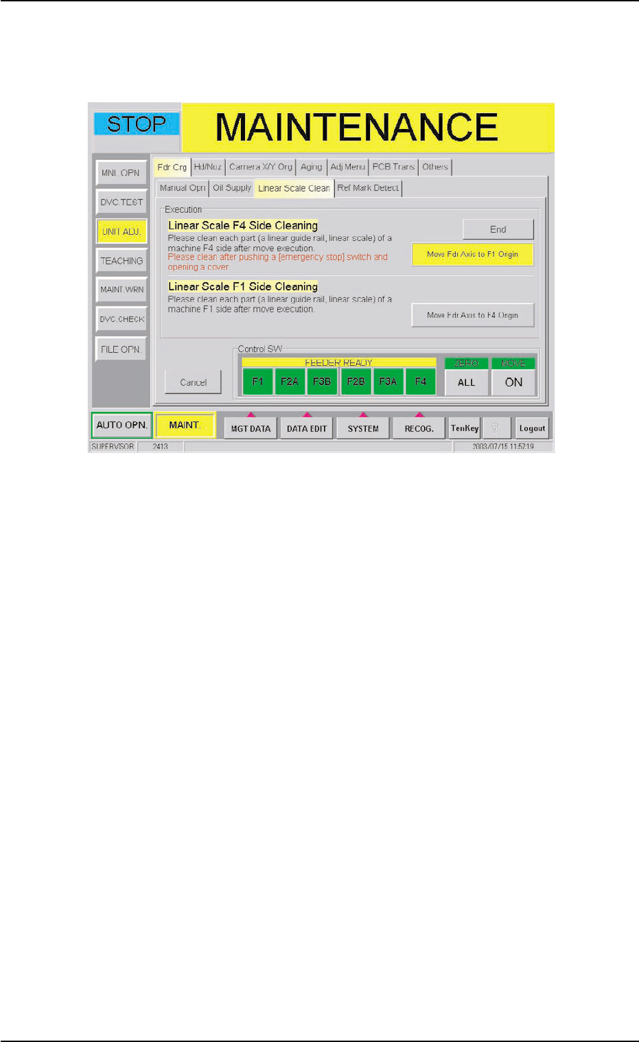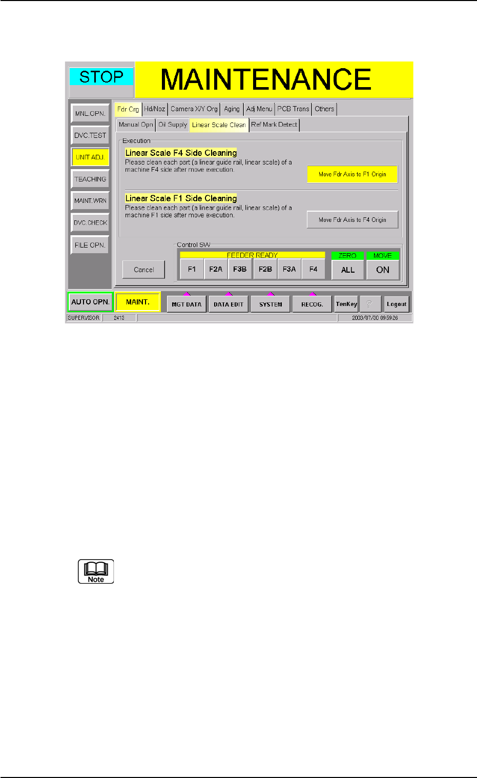 (1) When the [Linear Scale Clean] tab is pressed in the "Fdr. Crg." tab